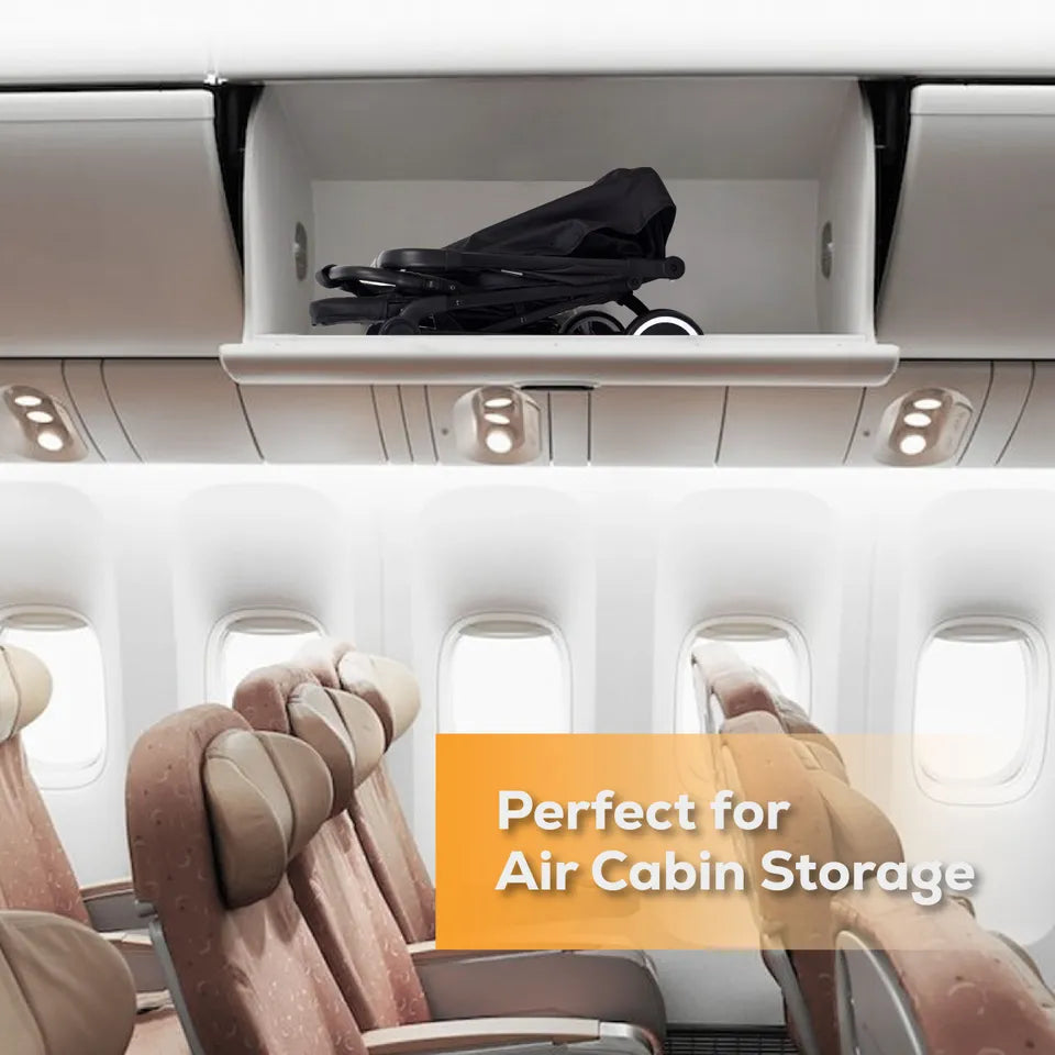 • This travel stroller's ultra-compact and folds within 60 seconds. It’s collapsible design ensures it will fit in airplane storage cabins and trains, eliminating the need to check your baby stroller while travelling.