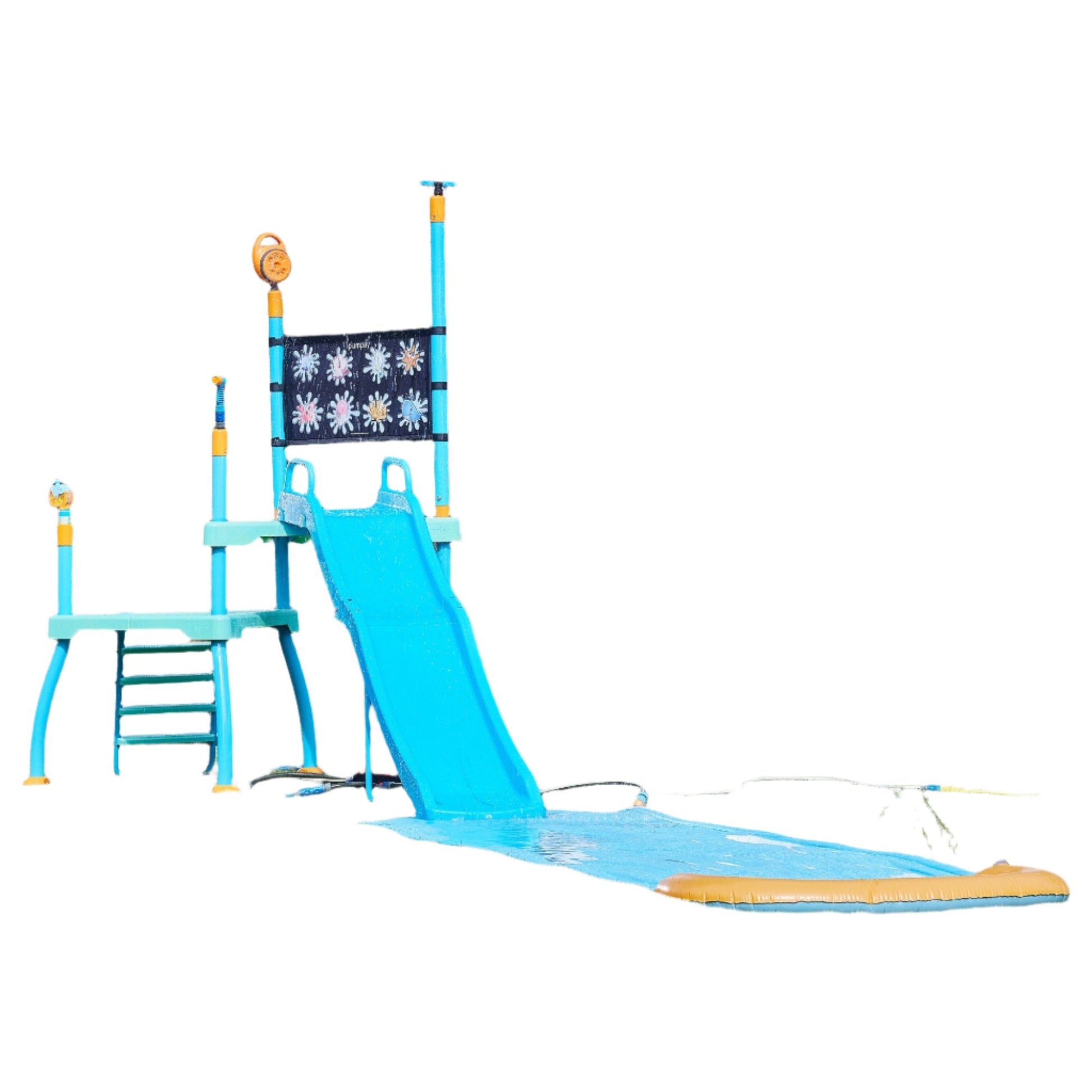 بمجرد الانتهاء من اللعب على المنصات، يمكن للأطفال الانزلاق على الشريحة المائية التي يبلغ ارتفاعها 6 أقدام وعلى طول المنحدر المائي الذي يبلغ ارتفاعه 3 أمتار، مع وجود رشاشات لضمان النقع الكامل!