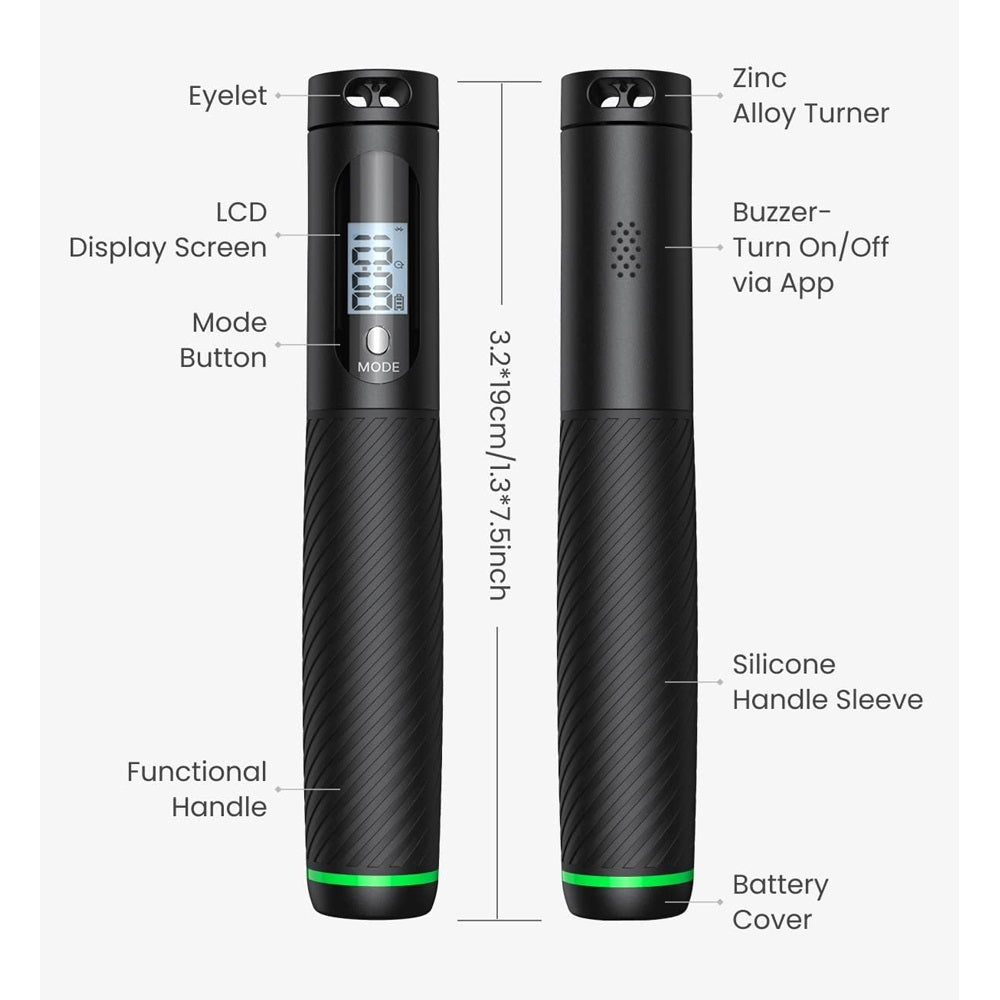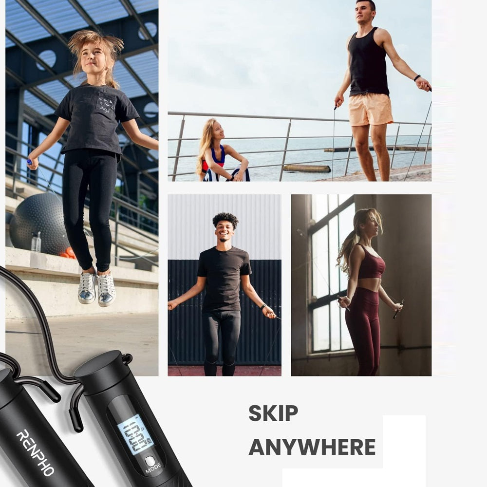• Smart Renpho Health App: RENPHO smart digital jump rope can connect to the Renpho Health App (iOS 7+ & Android 4.3+) via Bluetooth to tell you about the cardio exercise. APP will keep track of your workout data, including jump count, calories burned, time spent jumping etc, to analyze your periodic workout data.