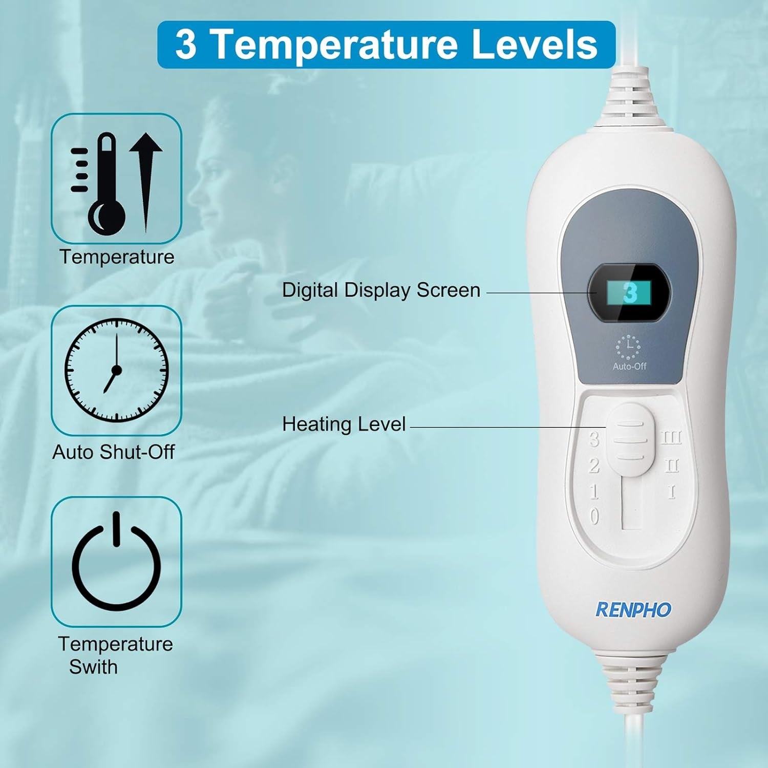 Smart Heating & Timer Settings: The LED controller of the electric heating pad has 3 heating settings. 90 minutes automatic shut-off function ensures safety and energy saving. The extra long power cord allows you to move extra movement while using the heat pad.