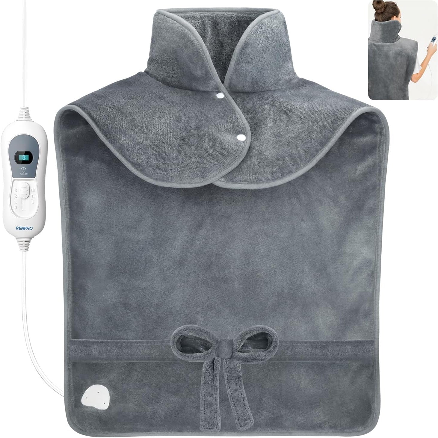 Extra-large Size for Back: The extra-large 24" x 33" heating pad offers full and snug coverage. Primarily designed for the shoulders and neck, the heating pad can also be flexibly applied to the back, waist, abdomen, legs, and more. The heat generated by this heating pad can soothing the fatigue pain.
