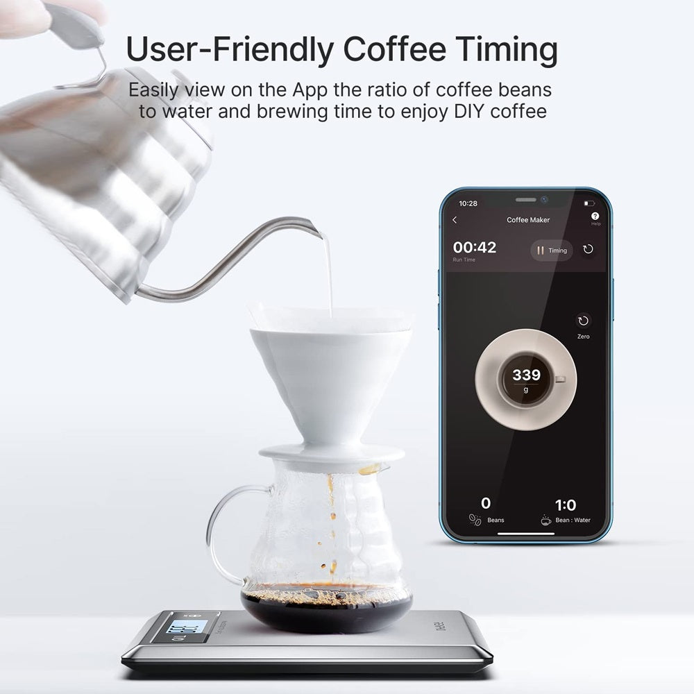 مؤقت إيقاف التشغيل التلقائي القابل للتعديل: يمكنك تخصيص وقت إيقاف التشغيل التلقائي لمقياس وزن الطعام إلى 30 ثانية، أو 60 ثانية، أو 90 ثانية، أو 120 ثانية من خلال التطبيق.