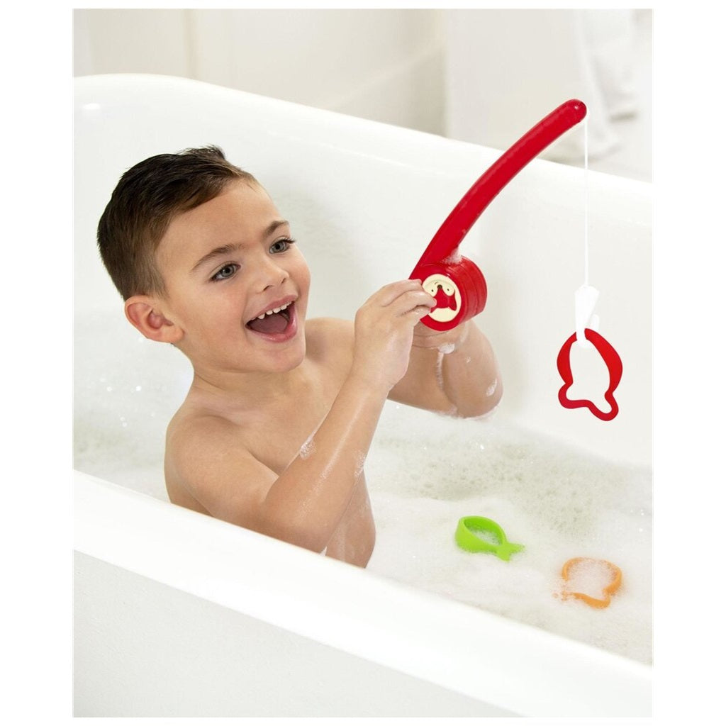 Let’s go fishing in the tub! Complete with three different size floating fish and a weighted hook for easier fishing, our cute fox fishing pole for toddlers even makes a “reel” cranking sound for an extra splash of bathtime fun.