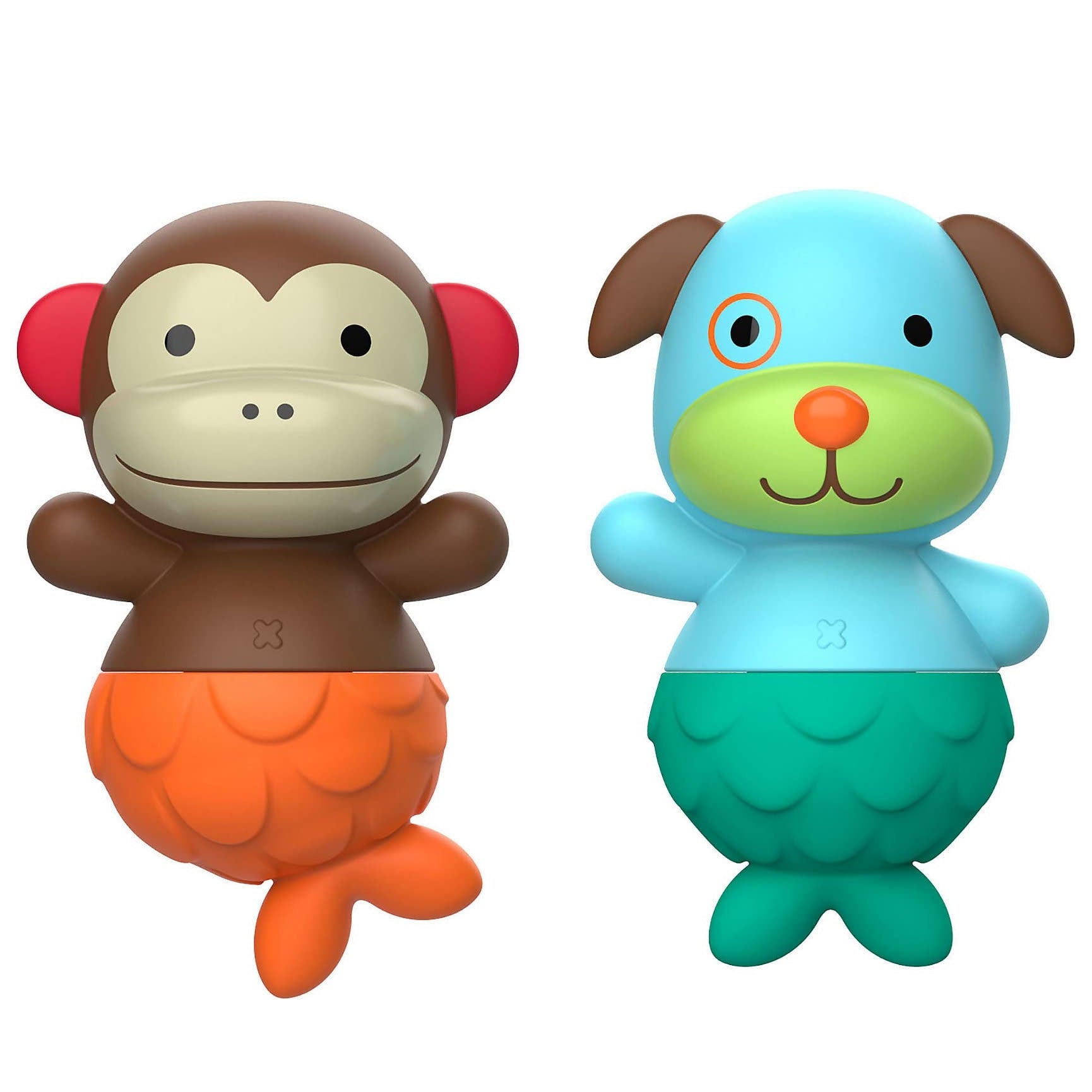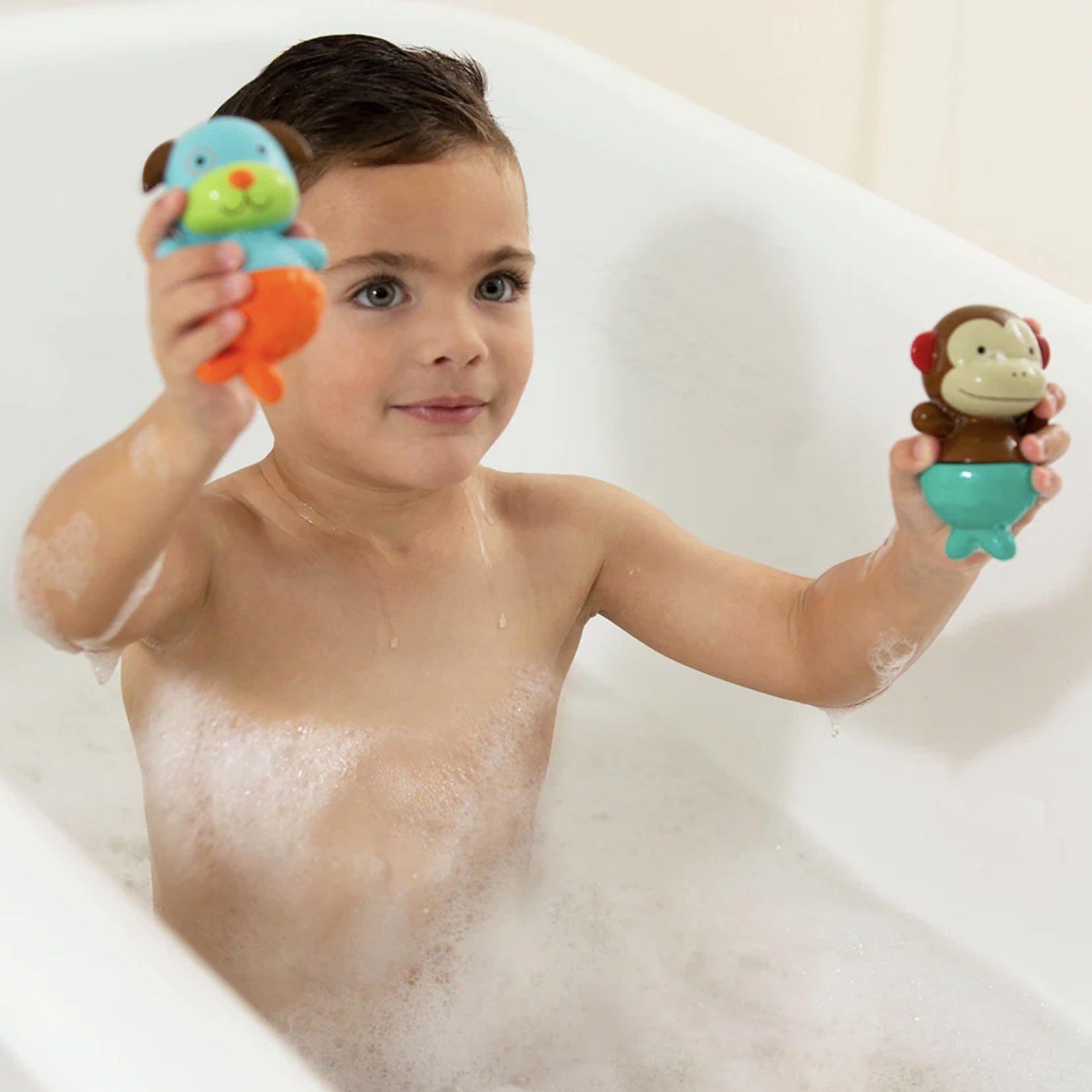 تتضمن المجموعة لعبة استحمام واحدة على شكل قرد ولعبة استحمام واحدة على شكل كلب
