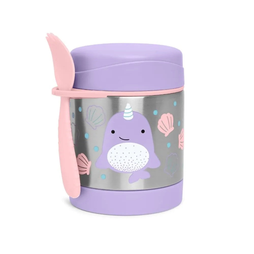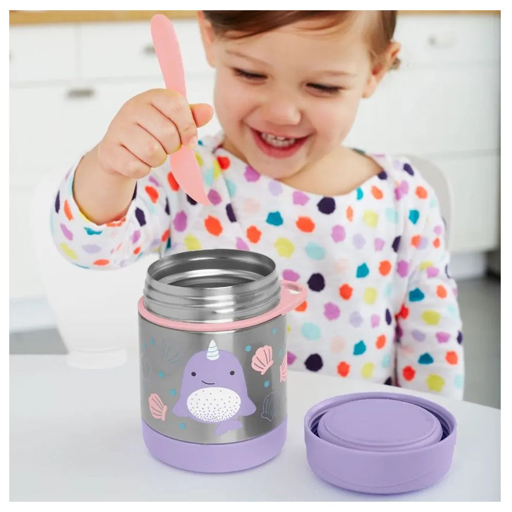 تحافظ هذه الحاوية الملونة المصنوعة من الفولاذ المقاوم للصدأ على وجبات الأطفال دافئة أو باردة. يمكنك تخزين الملعقة أو معظم أدوات المائدة في الحامل المدمج المريح حتى يكون طفلك الصغير جاهزًا لتناول الوجبات أثناء التنقل.