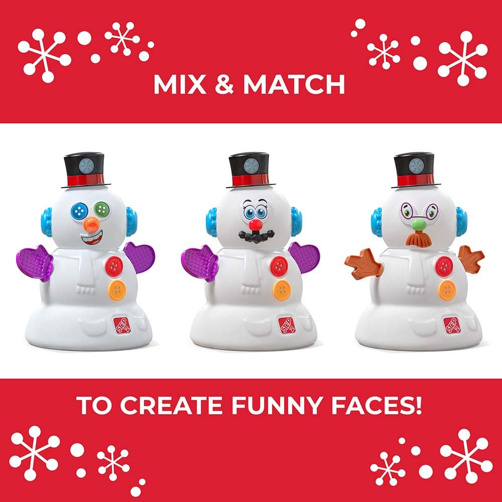 This festive snowman toy by Step2 lets kids build a snowman and get in the winter spirit year-round! Create a variety of silly faces and personalities with the put-and-place style snowman, and tap the magic hat to play festive tunes and light up the snowflake. Full of whimsy and winter-themed fun, your child will enhance their fine motor skills as they play, as well as using their imagination to create their unique snowman character! Made in USA of US and imported parts.