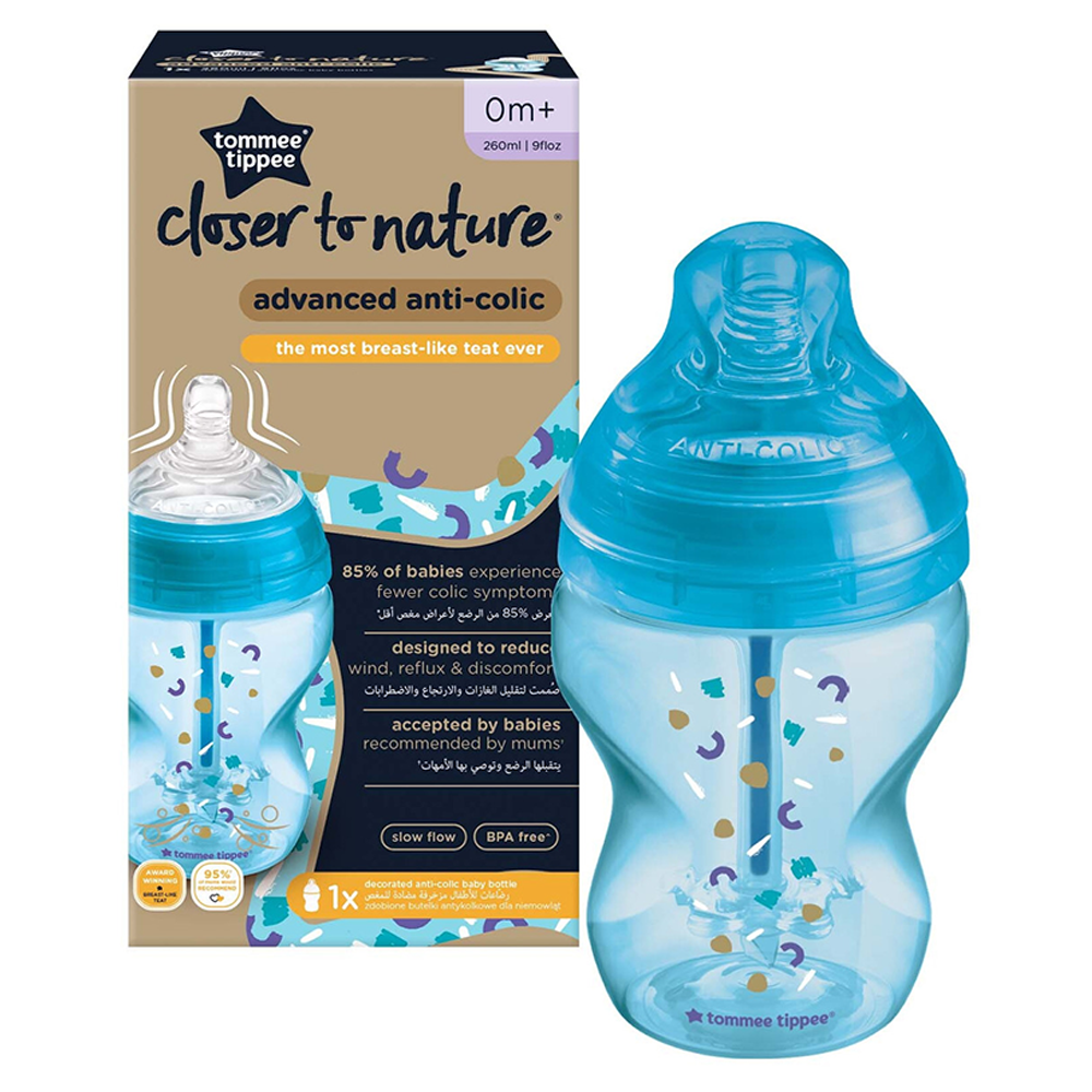 تم تصميم زجاجة تومي تيبي المتطورة المضادة للمغص لمحاكاة تجربة الرضاعة الطبيعية سواء بالرضاعة الطبيعية أو بالزجاجة، حيث أفادت 84% من الأمهات بانخفاض أعراض المغص. يوصى بها للأطفال من عمر 0 أشهر فما فوق، مع توفر معدلات تدفق مختلفة للأطفال في مرحلة النمو.