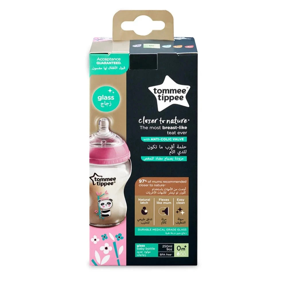 أرضعي أطفالك بطريقة صحية أكثر مع زجاجة تومي تيبي 250 مل كلوزر تو نيتشر الزجاجية للبنات. تحتوي هذه الزجاجة على حلمة سيليكون تشبه ثدي الأم وحركتها ومرونتها ونعومتها. بفضل صماماتها المضادة للمغص، تعمل هذه الحلمات على إبعاد الهواء الزائد عن معدة طفلك وتقلل من أي شكل من أشكال الانزعاج. مع علامات التدرج، يصبح من الأسهل عليك قياس كمية الوجبة بدقة.