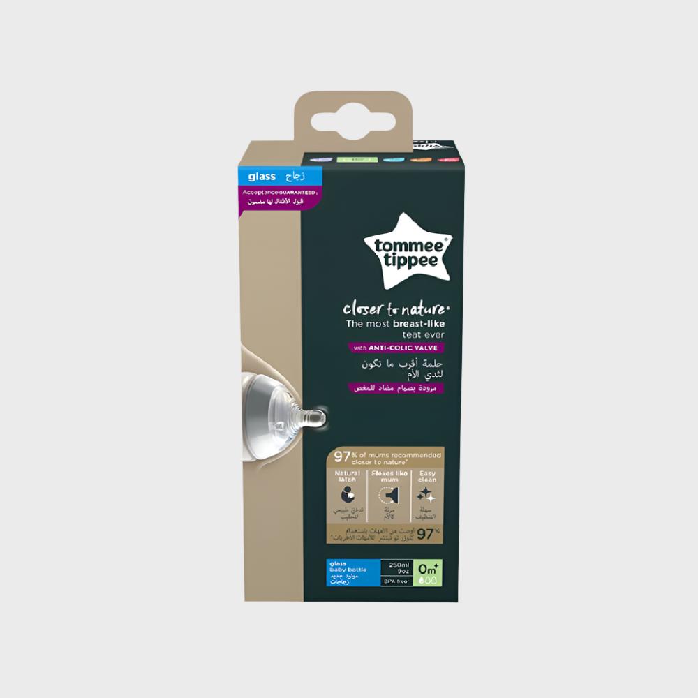 - تومي تيبي - زجاجة رضاعة زجاجية كلوزر تو نيتشر، 250 مل × 1 - شفافة
