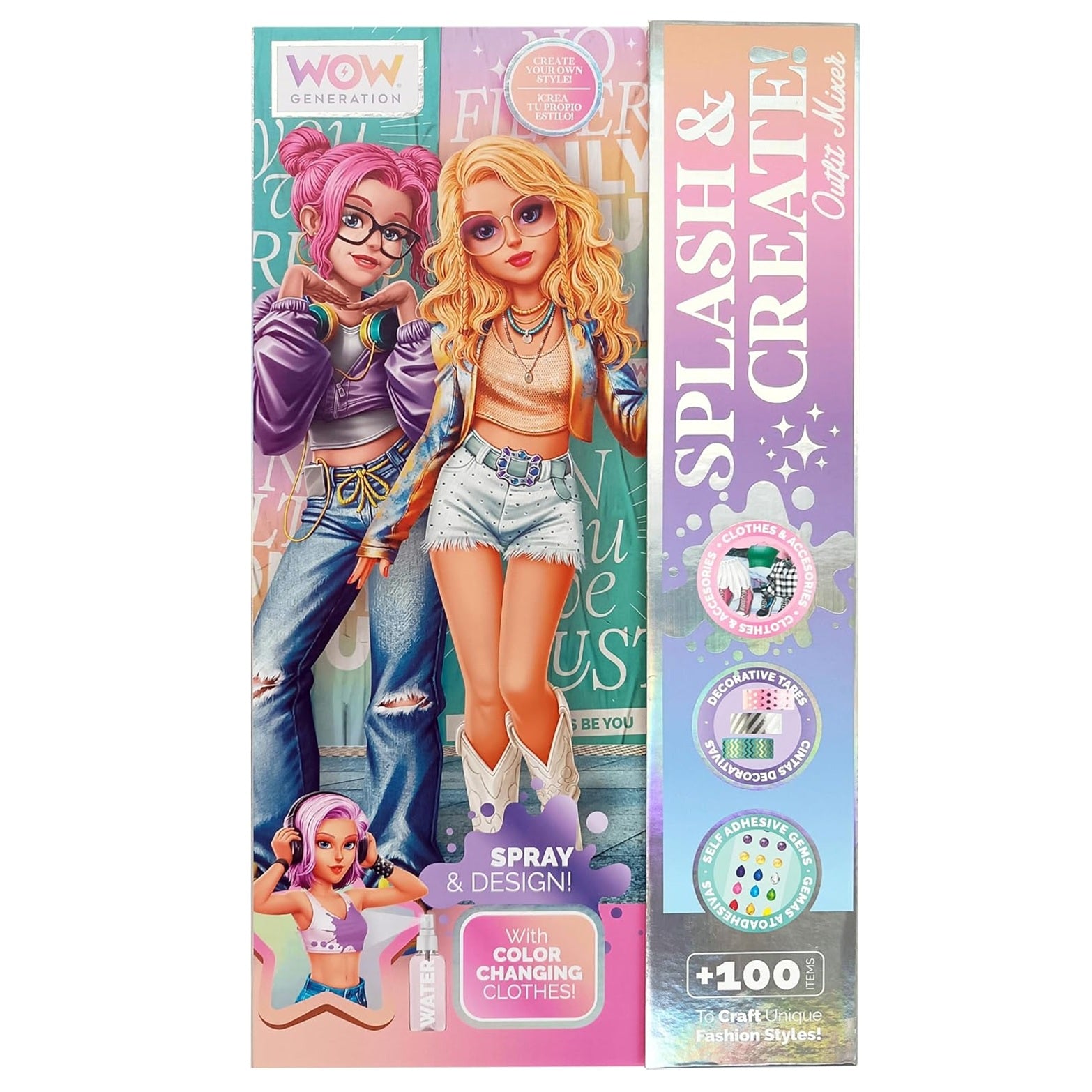 Immerse yourself in the world of fashion with our innovative Splash and Create set from Wow Generation. With this exciting technology, you can transform clothing from black and white to color with a simple spray of water, creating dazzling looks in just three easy steps! 1. Place the clothing items on the Wow girl’s body to create your black and white design.