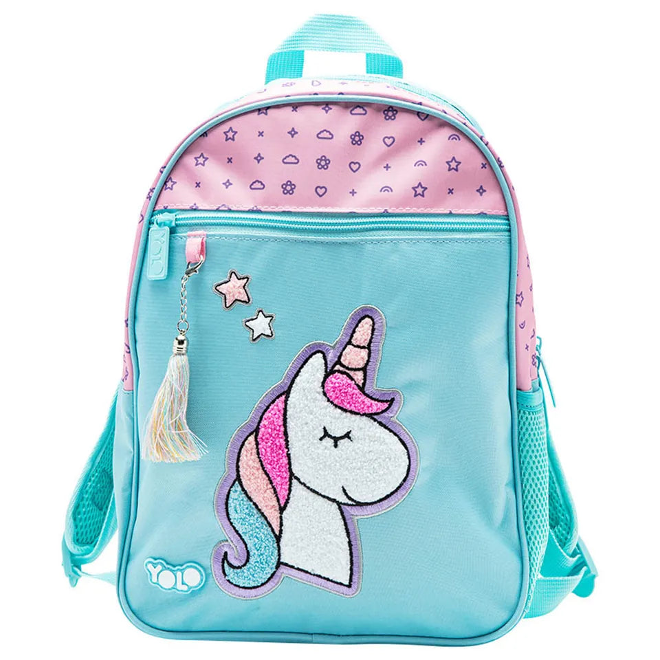 Introducing the YOLO Unicorn Kindergarten Bag: A Perfect Companion for Little Adventurers! Our Unicorn Kindergarten Bag is designed to make your child's school journey truly extraordinary. This bag features a delightful unicorn design that will capture the hearts and imaginations of young adventurers. With its vibrant colors, sparkling details, and adorable unicorn motif, it's sure to be an instant hit among kids. , , The bag is designed with one large compartment, providing ample space to store any essentials your child may need. It's perfect for organizing their belongings and ensuring everything stays in place throughout the day. In addition to the main compartment, there is also a smaller compartment that is ideal for holding smaller items. Our Unicorn Kindergarten Bag comes with 2 dedicated pockets for a water bottle. Your child can easily reach for their refreshing drink without any hassle, helping them stay hydrated and focused on their adventures. , , Durability is a top priority for us, which is why this bag is made from high-quality materials that can withstand the daily wear and tear of an active child. The sturdy zippers ensure that everything is secure, while the adjustable straps provide a comfortable fit for kids of all sizes. So, why settle for an ordinary kindergarten bag when your child can have a Unicorn Kindergarten Bag? Let their dreams take flight as they embark on a new school year filled with wonder and enchantment.