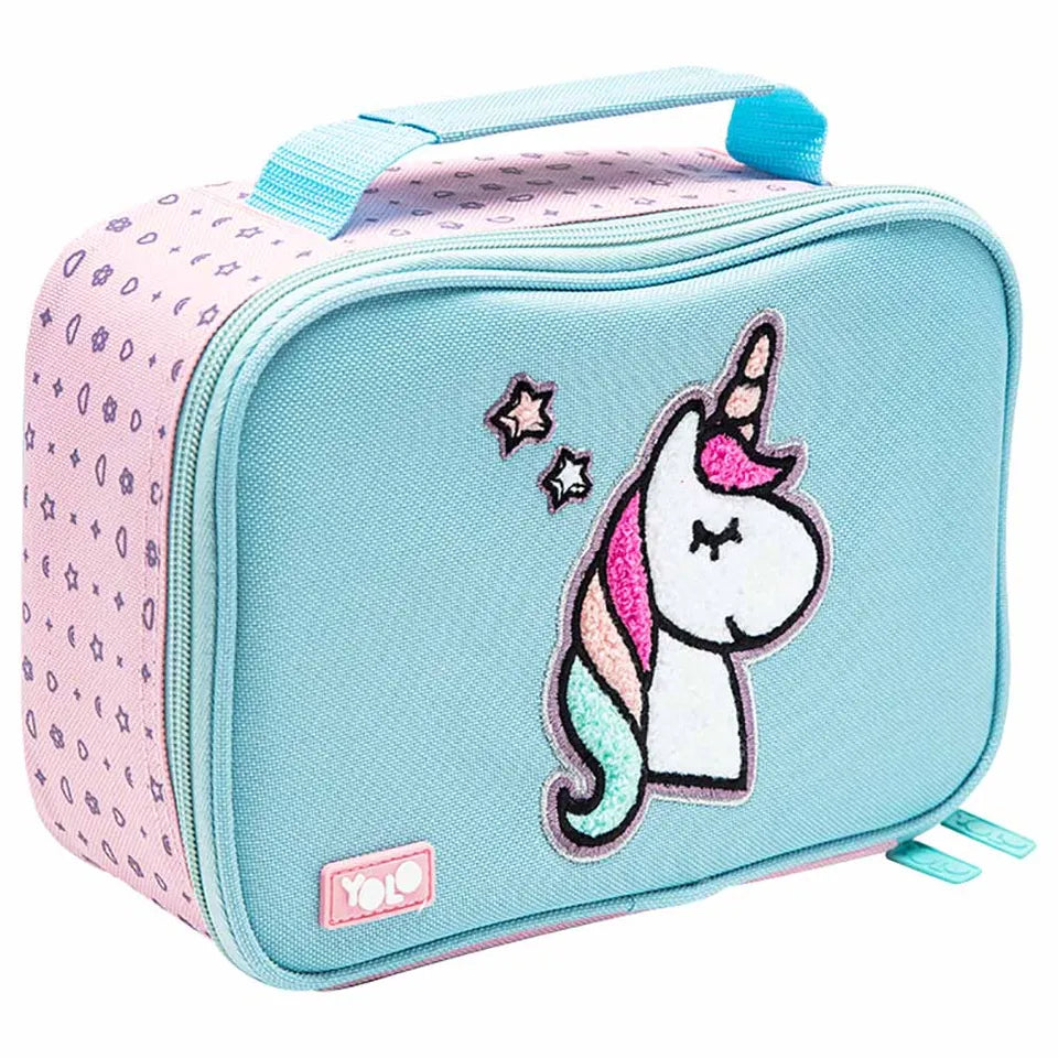 Introducing the unicorn Lunch Bag: Keep Meals Fresh and Stylish! Our unicorn Lunch Bag combines practicality, durability, and a delightful unicorn design to make your lunchtime a truly enjoyable experience. This lunch bag is designed to keep your meals fresh and delicious throughout the day. With its insulating material inside, it provides excellent temperature control., , Comes with a comfortable carry handle so that you can take it with you anywhere. But it's not just about functionality our Lunch Bag also adds as fun to your little ones daily routine. The adorable unicorn design on the exterior is sure to bring a smile to the face of your little one and make lunch break even more delightful. With its spacious rectangular shape, this lunch bag offers plenty of room for meal containers, snacks, fruits, and even a small water bottle. The wide opening allows for easy access and hassle-free packing, while the sturdy zipper closure ensures that everything stays securely in place. Durability is a top priority for us, which is why this lunch bag is made from high-quality materials that are built to last. The reinforced stitching and sturdy handles make it easy to carry, even when filled with favourite culinary creations. So, why settle for a dull and uninspiring lunch bag when you can have the unicorn Lunch Bag? It combines functionality, durability, and a delightful unicorn design to make lunchtime a truly special occasion.