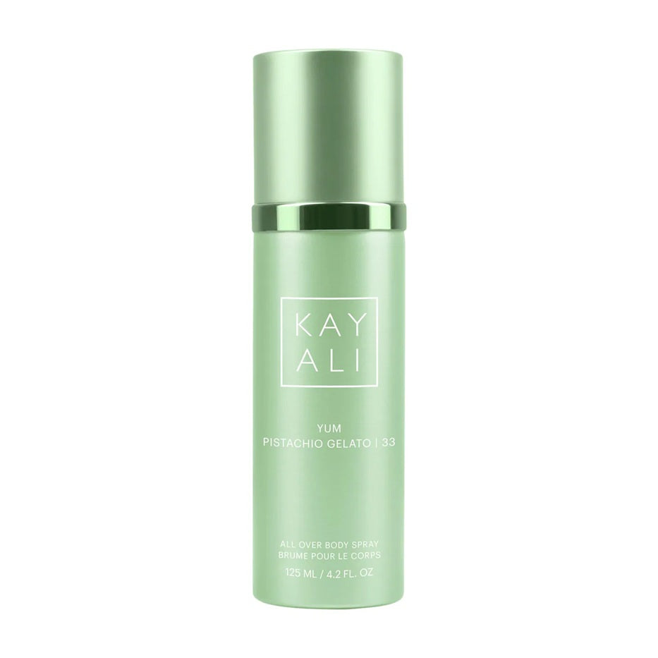 The limited-edition KAYALI Yum Pistachio Gelato | 33 All Over Body Spray is a soft take on the original yummy, happy, and irresistible eau de parfum Intense. It envelops you in a powerful continuous mist, making it your go-to companion for a decadent scent and layering experience anytime, anywhere. Whether you're starting your day, refreshing after a workout, or looking for a perfect post-shower fragrance fix, this versatile spray is designed to uplift your senses—and your layering routine!