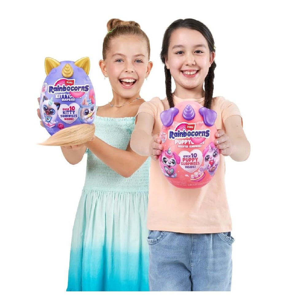 Discover new candy coated cuties with Puppycorn Scent Surprise! Crack open the egg to discover an adorable Puppycorn, along with a scented accessory that will tickle your senses. But the surprises don't end there! Dive into the world of playful fun with puppy poop slime and scented stickers that will leave you smiling from ear to ear. There are 7 brand new puppies to collect, each with their own individual scented accessories! Which puppy pal will you unbox?