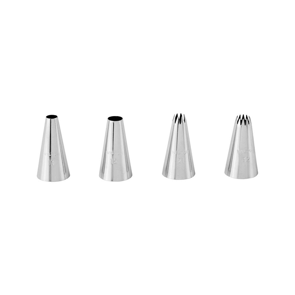 سواء كنت مبتدئًا في التزيين أو محترفًا متمرسًا، تتيح لك مجموعة الأطراف هذه من ويلتون إنشاء زخارف جذابة للكعك والكب كيك. تتكون من أربعة أطراف تزيين كبيرة، مثالية لصنع دوامات وأصداف ونجوم ونقاط رائعة، من بين تصميمات أخرى. مع أطراف دائرية ونجمية، توفر هذه المجموعة المدمجة العديد من إمكانيات التزيين.