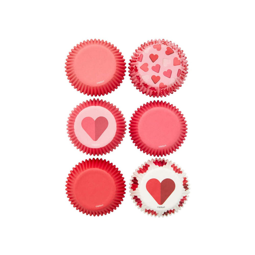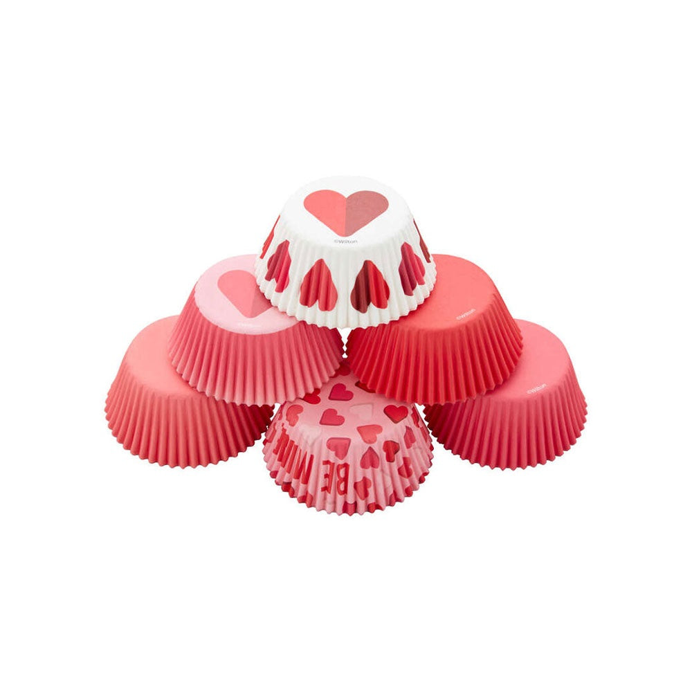- أكواب الخبز القياسية ذات القلوب الحمراء والوردية من ويلتون، مجموعة من 150 قطعة