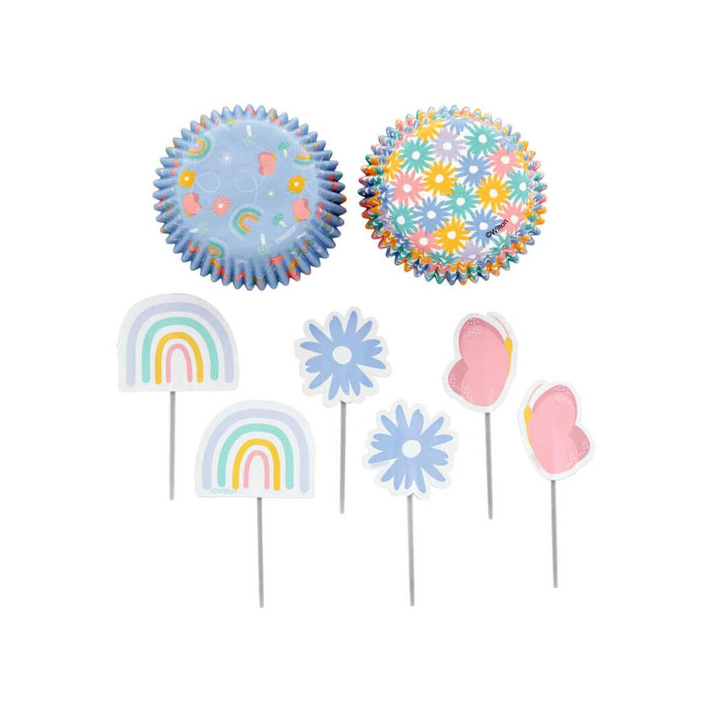 تتيح لك مجموعة تزيين الكب كيك من ويلتون إنشاء كعكات كب كيك جميلة مثالية للاحتفال بعيد الفصح أو الربيع. تتضمن أربع بطانات كب كيك ملونة وأربع زينة كب كيك رائعة بطابع عيد الفصح.