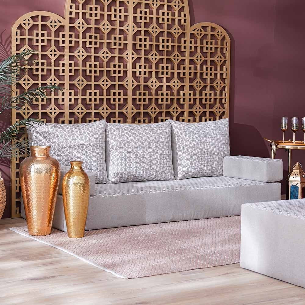 أضف الدفء إلى اجتماعاتك مع المجلس العربي المكون من ثلاثة مقاعد، والذي تم تصميمه بسحر البحر الأبيض المتوسط التقليدي. يتميز بمظهر خارجي مريح مع تنجيد من القماش الناعم بظل رمادي أنيق، إلى جانب وسادة من الإسفنج. تقدم الشركة المصنعة ضمانًا لمدة عامين، مما يضمن طول العمر.