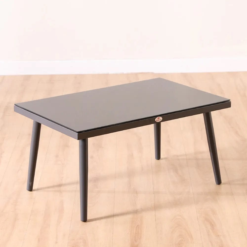 Spacious table: The set comes with a perfectly matching table with a steel frame and a tempered glass tabletop.