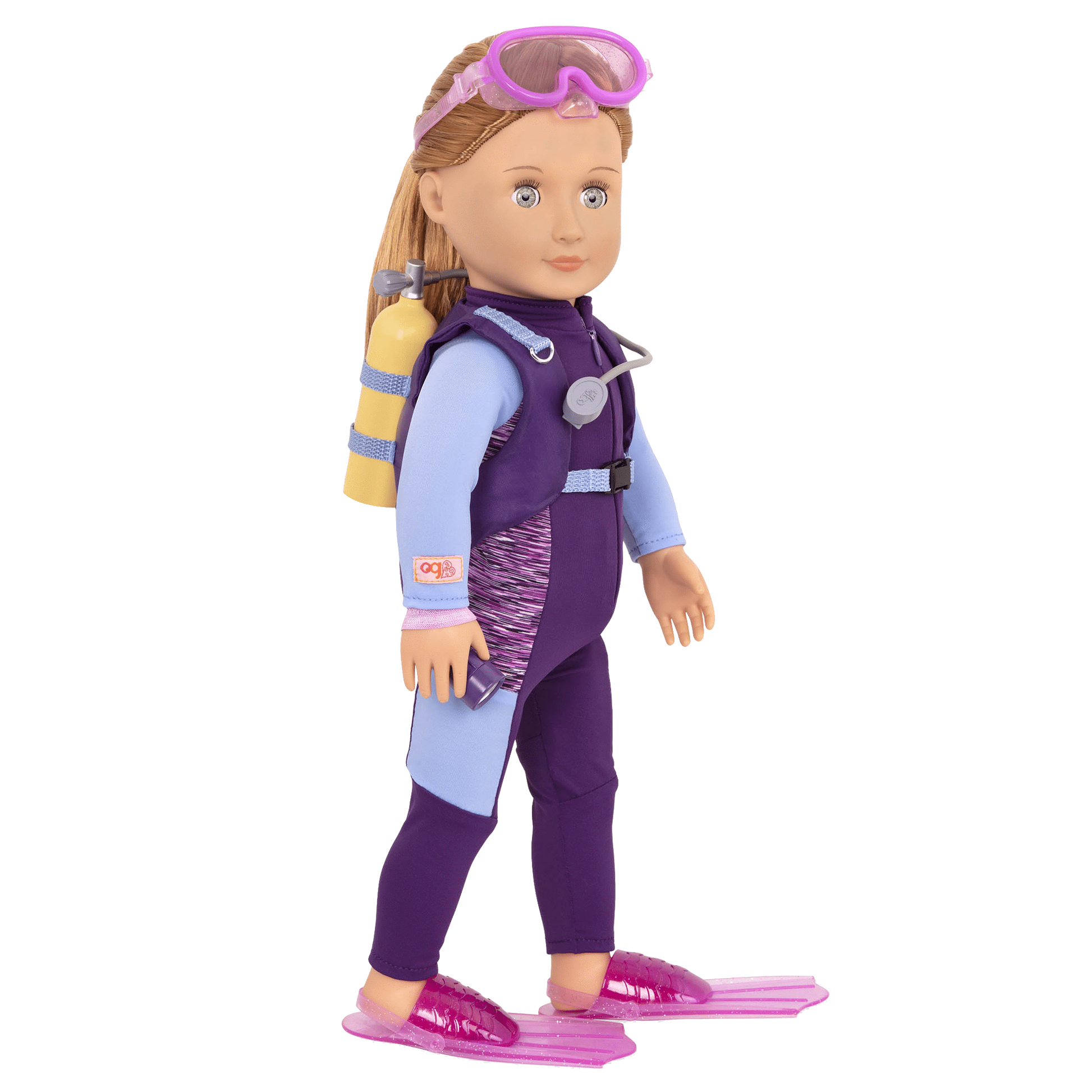 انغمس في المغامرات واسبح نحو أهدافك المهنية مع هاتي، دمية عالمة الأحياء البحرية المحترفة مقاس 18 بوصة من أور جينيريشن! إنها مستعدة لزيارة عالم آخر تحت الأمواج، وتعلم الكثير عن المحيط وكل ما فيه من حياة مثيرة على طول الطريق. تتمتع هاتي بعيون خضراء شاحبة جميلة وشعر أحمر طويل مستقيم مُصفف على شكل ذيل حصان مضفر. استمتع بتمشيط شعرها وتصفيفه بطرق مختلفة!