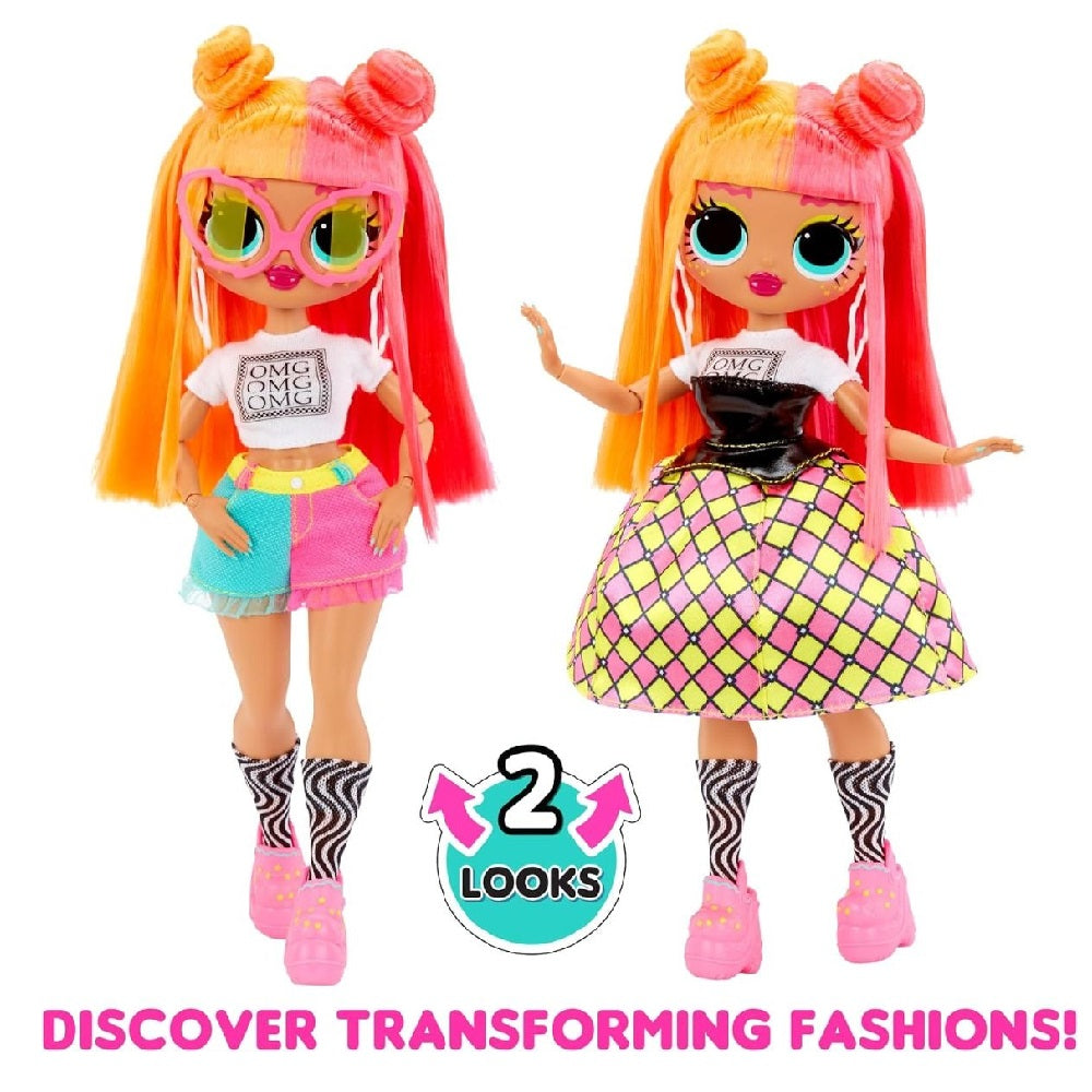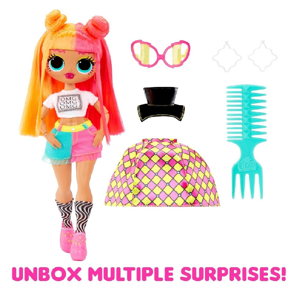 دمى LOL - دمية OMG HoS Neonlicious: Neonlicious هي دمية نابضة بالحياة وجريئة تعرض إحساسًا فريدًا بالأناقة. بألوانها الزاهية وملابسها العصرية، تلهم الأطفال لاحتضان فرديتهم وإبداعهم. هذه الدمية مثالية لمغامرات اللعب، مما يسمح للأطفال باستكشاف ذوقهم في الموضة أثناء الانخراط في سرد القصص الخيالية.