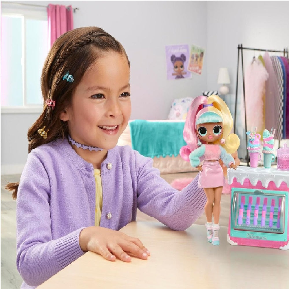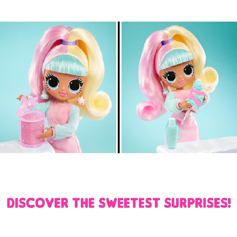 دمى LOL - OMG Sweet Nails Candylicious Sprinkles Shop: تتميز دمية Candylicious Sprinkles Shop بالأناقة والإبداع. بفضل ملابسها الرائعة وإكسسواراتها الممتعة، تدعو الأطفال إلى دخول عالم من اللعب الخيالي حيث يمكنهم إدارة متجر الحلوى الخاص بهم. تشجع هذه الدمية اللعب التفاعلي وتعزز حب كل الأشياء الملونة والسكرية.