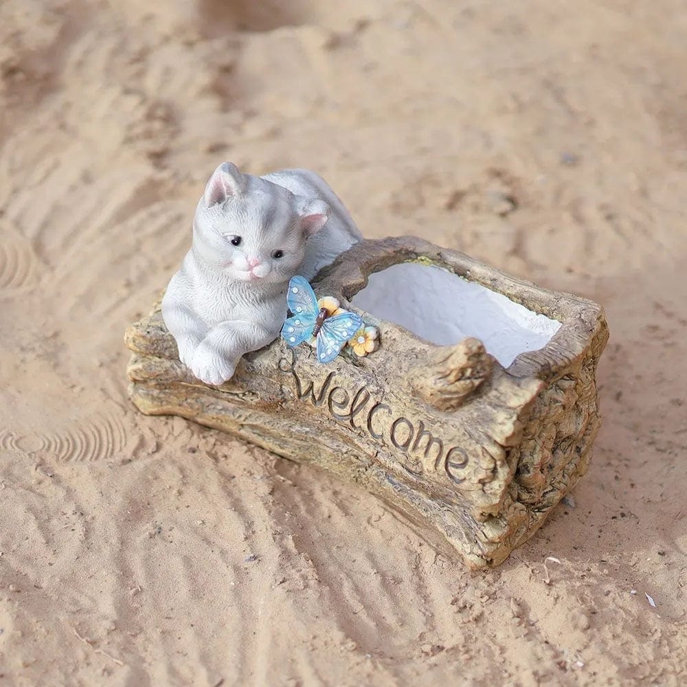 صُنعت هذه القطعة المزروعة على شكل قطة من مادة البولي راتنج، وصُممت بعناية فائقة للتفاصيل. تتميز بتصميم أنيق وتشطيبات تزيد من جمال المكان دون عناء. القطعة المزروعة على شكل قطة تجلس على جذع شجرة، برفقة فراشة. يضفي التباين في اللون سحرًا على القطعة. صُنعت من أكسيد المغنيسيوم المتين الذي يضفي شعورًا ريفيًا رائعًا على ديكور حديقتك. ستكون إضافة جيدة الصنع وجميلة من الناحية الجمالية إلى حديقتك أو مساحتك الخارجية.