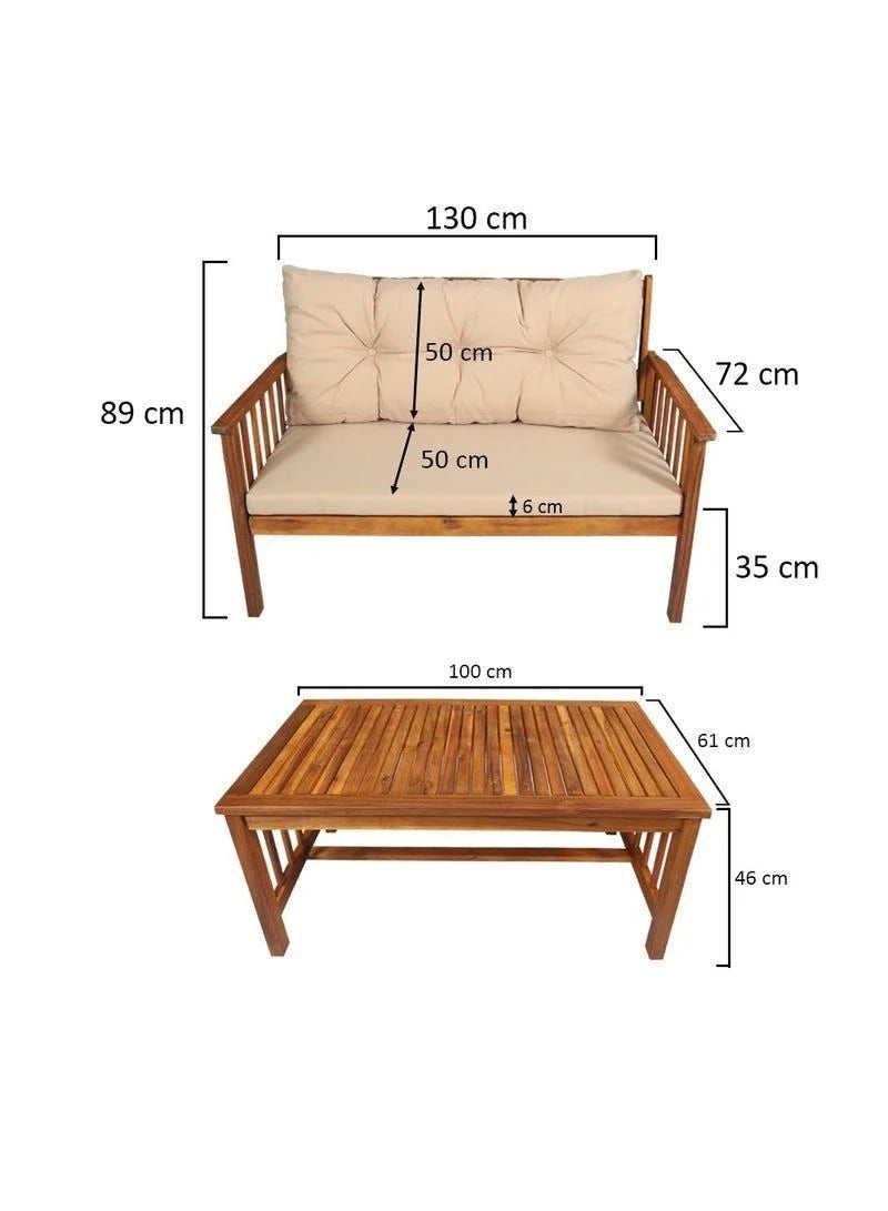 - طقم أريكة حديقة من خشب الأكاسيا الصلب مكون من 4 مقاعد