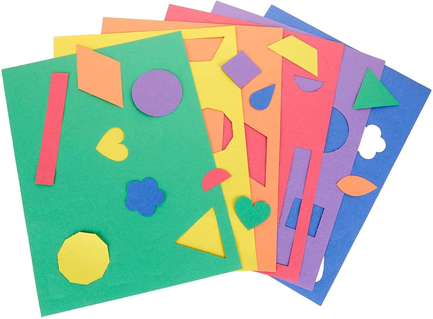 • Includes 48 sheets of construction paper with micro-perforated shapes. 9” x 12”. 8 sheets each of 6 colors: red, orange, yellow, green, blue, and violet with various simple shapes in a range of sizes.