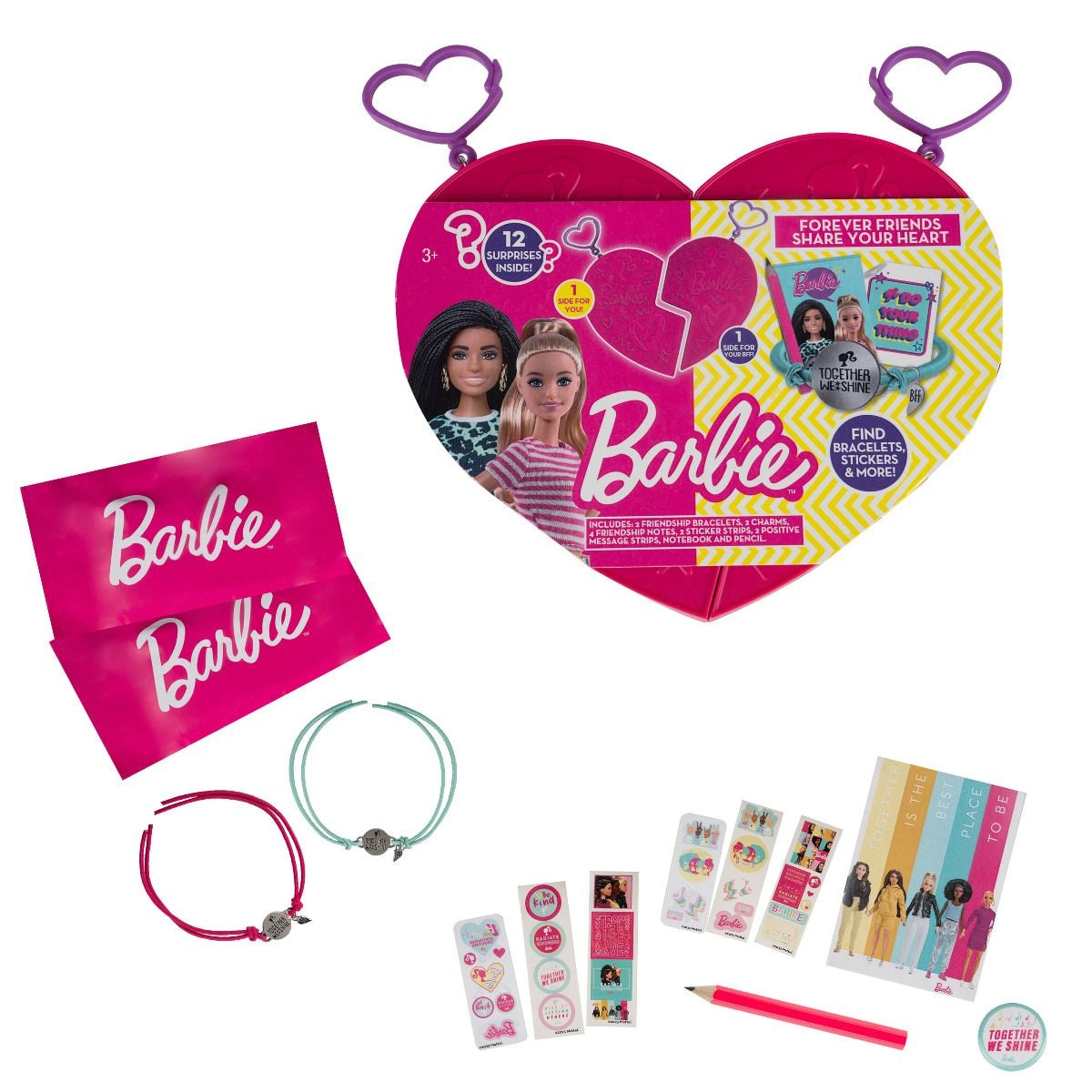 مجموعة ميداليات باربي فوريفر فريندز شاركي قلبك هي الطريقة المثالية لإظهار مدى اهتمامك بصديقتك المفضلة! تتضمن هذه المجموعة 12 مفاجأة، كل منها رمز للحب والصداقة، مما يجعلها هدية مثالية لصديقتك المفضلة. تحتوي الميدالية على جانبين، واحد لك والآخر لصديقتك المفضلة، مما يعني أنه يمكنكما إبقاء بعضكما البعض بالقرب من قلوبكما في جميع الأوقات. بفضل التصميم الأنيق والراقي، من المؤكد أن هذه الميدالية ستصبح عنصرًا عزيزًا في مجموعتك. , , يرجى ملاحظة: قد تختلف أنماط ولون العنصر المستلم حسب التوافر،