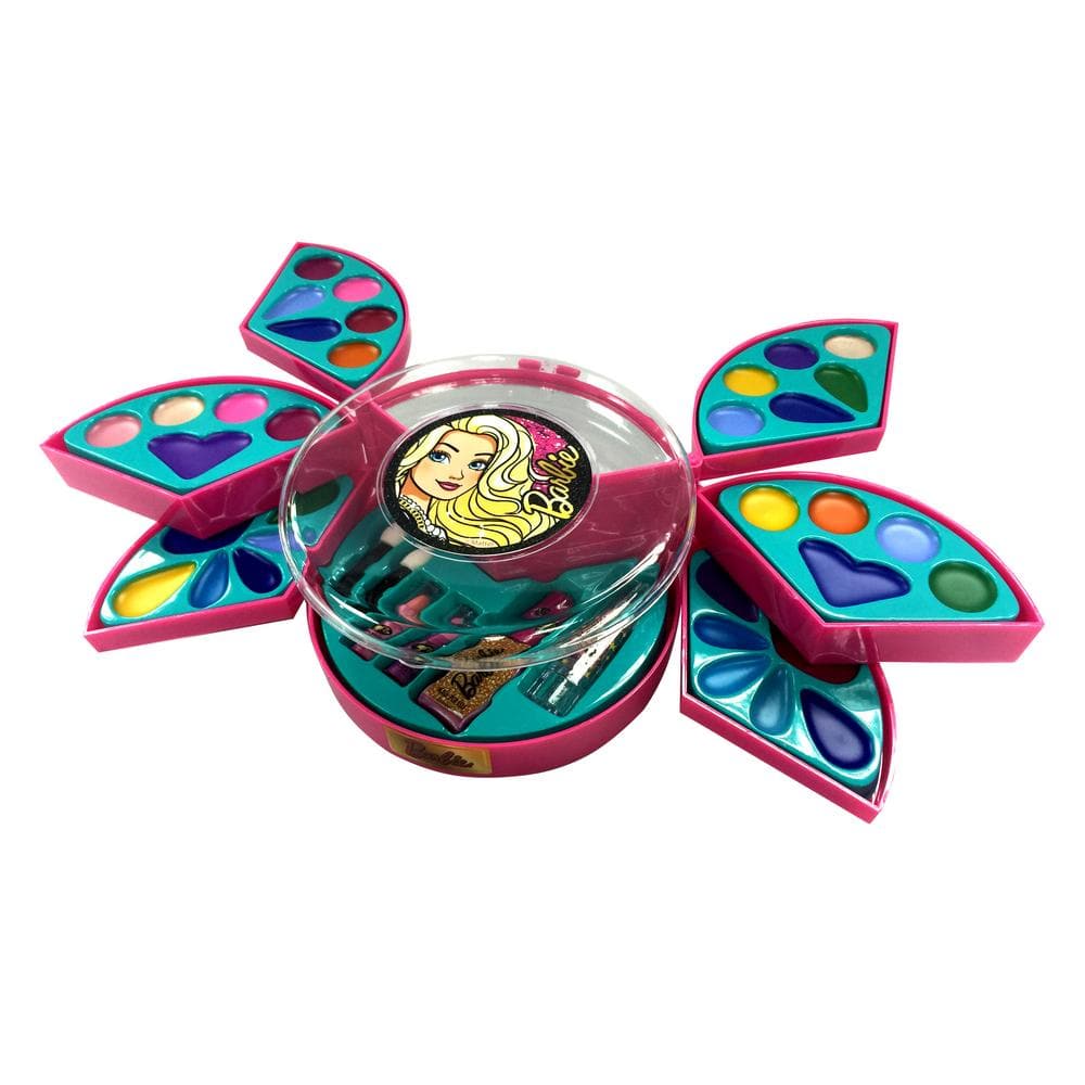 احصلي على إطلالة رائعة مثل باربي. سيُلهم استوديو المكياج الخاص بباربي الفتيات الصغيرات ليظهرن دائمًا بمظهر أنيق وساحر مثل باربي مع مجموعة مستحضرات التجميل والإكسسوارات العصرية الخاصة بهن. تتميز المجموعة بحقيبة مكياج دائرية مع أدراج قابلة للسحب لتخزين ظلال العيون بألوان مختلفة وأدوات وضع المكياج وأحمر الشفاه ومرآة.