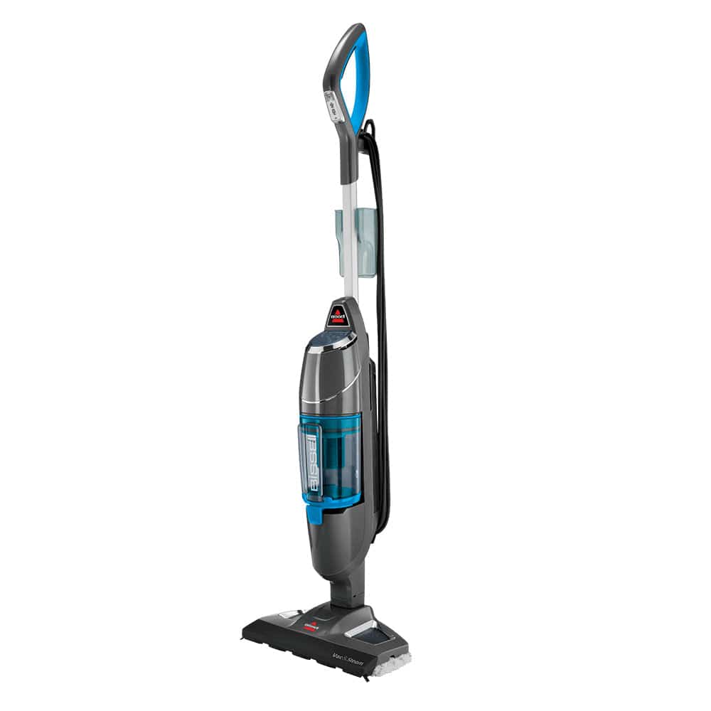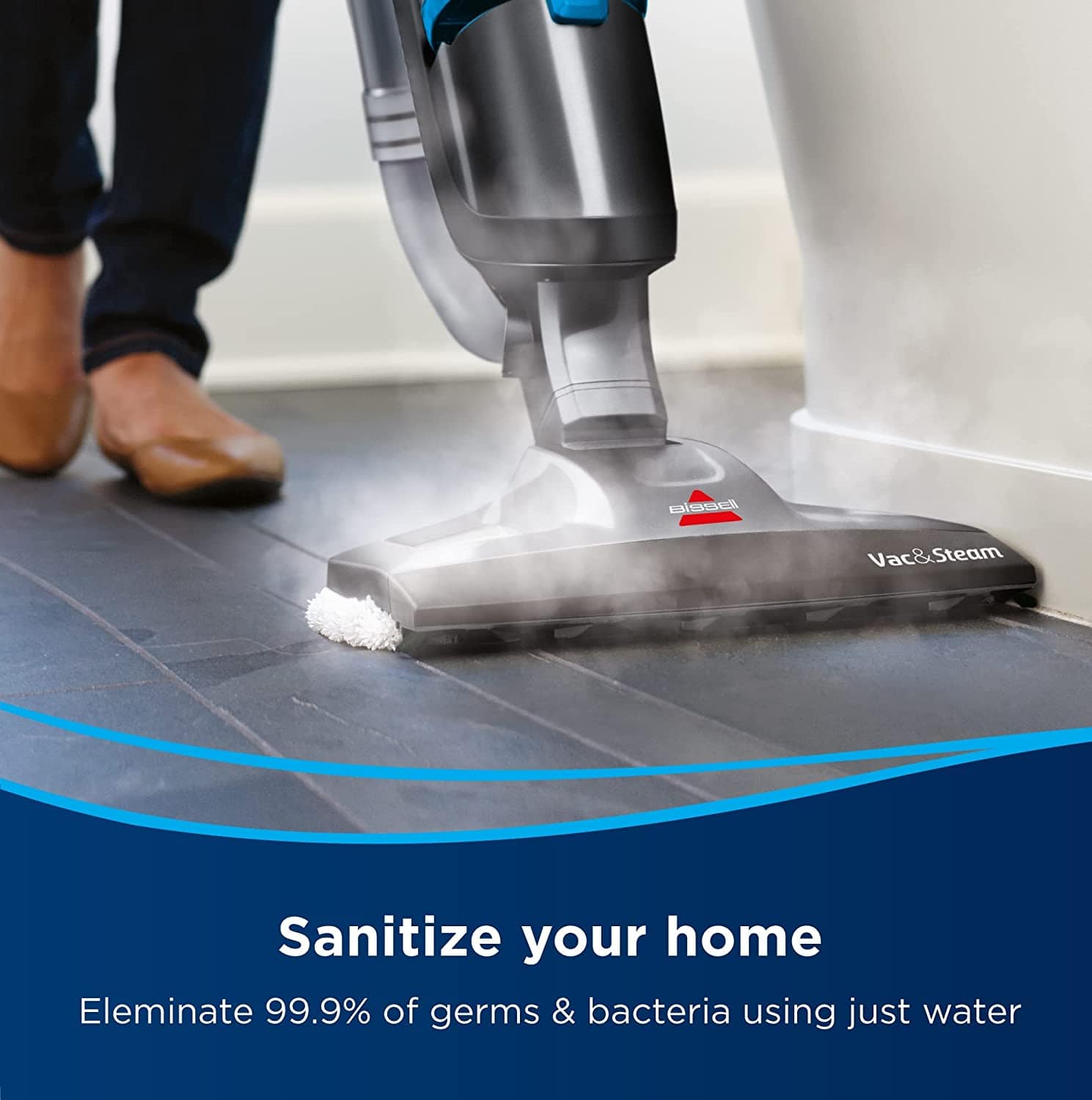 - SAFE AND EASY: The BISSELL Vac and Steam Vacuum cleaner is safe to use around kids and home because it uses just water to naturally sanitize floors, which eliminates 99.9% of germs and bacteria. Safe to use across all sealed hard floors.