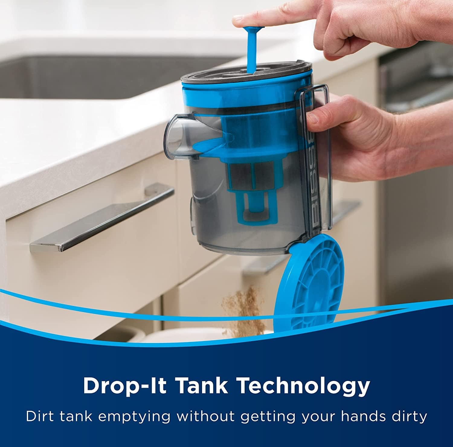 - HANDS-FREE EMPTYING: Enjoy an easier way to empty your dirt tank without getting your hands dirty thanks to our Drop-It Tank Technology. Keeps moisture out so your dirt tank is completely dry with our Dry Tank Technology.