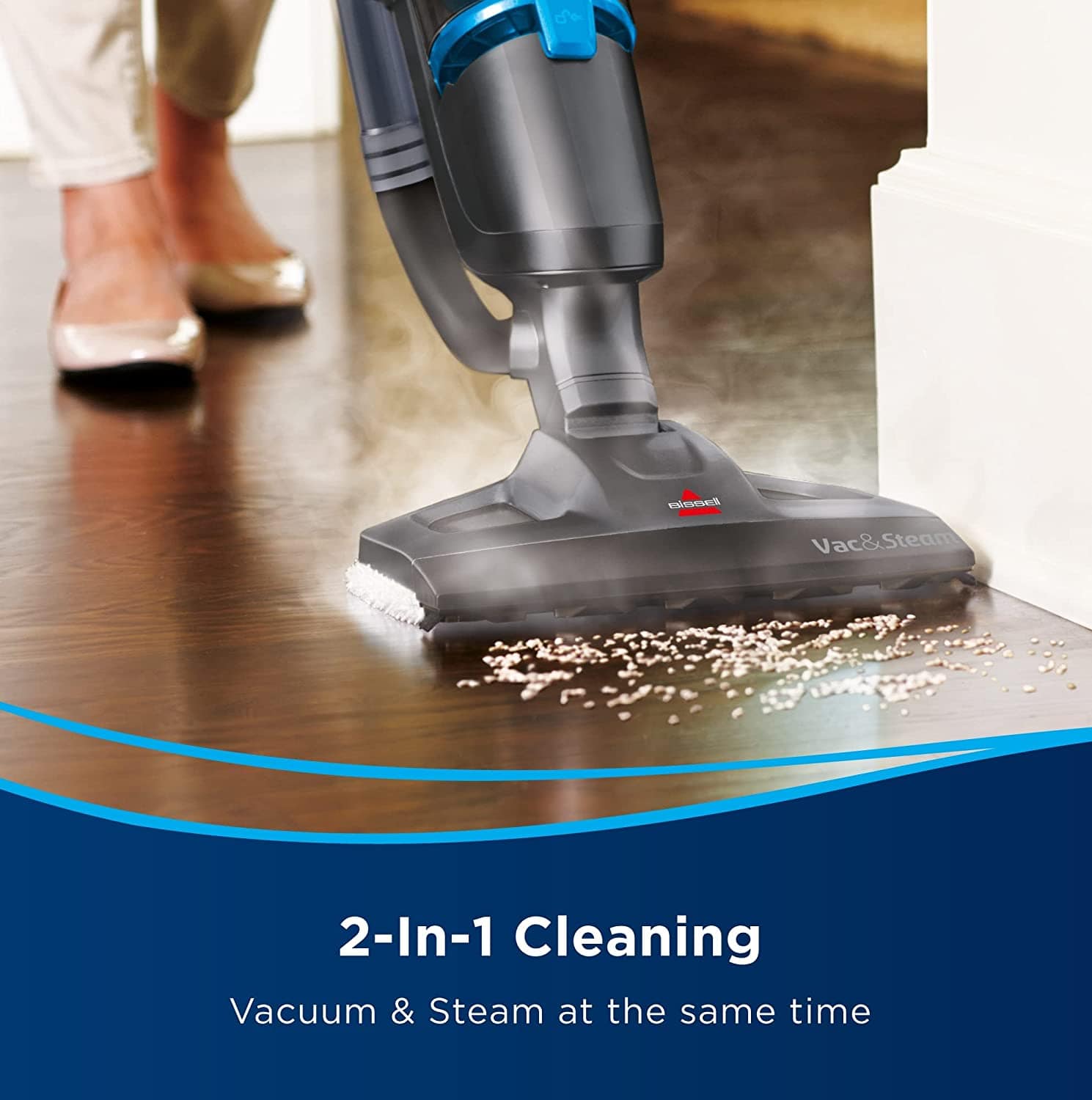 - ALL-IN-ONE: The BISSELL 1977E Vac & Steam Vacuum Cleaner makes cleaning up your messes easy by working as a vacuum cleaner & a steam cleaner in the same machine. It vacuums up debris while also steam cleaning, so cleaning your floors is one simple step