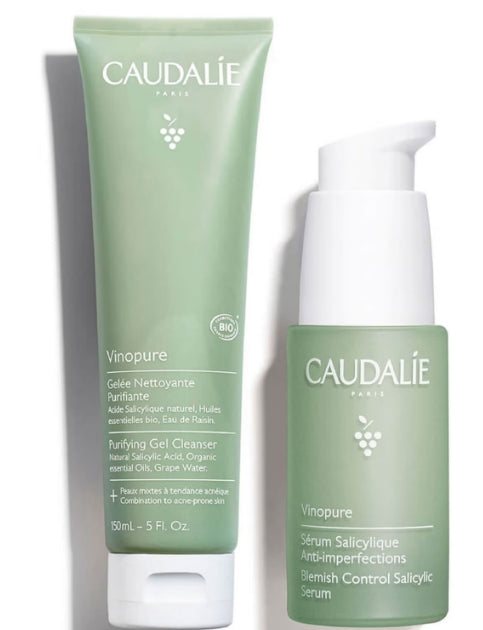 Upgrade your skincare collection with the Caudalie Vinopure Bundle. The set features a cleanser and serum, both infused with high-performance ingredients. Natural salicylic acid works to visibly unclog pores and refine skin texture, while a blend of polyphenols and niacinamide promotes a bright and clear complexion.