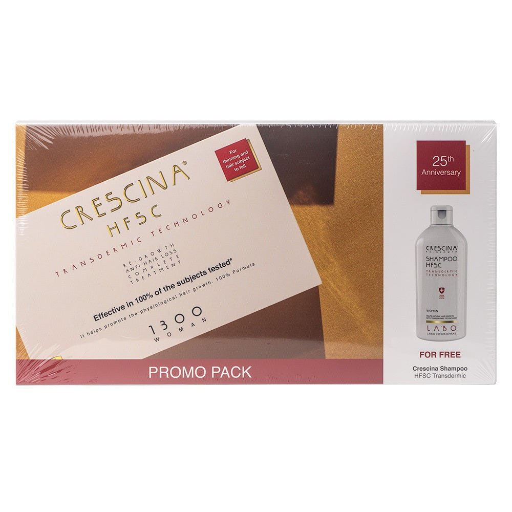أمبولات تحتوي على Crescina Transdermic Re-Growth HFSC ، وأمبولات أخرى تحتوي على كريسينا ترانسديرميك مضاد لتساقط الشعر، الذي يجمع بين المكونات النشطة الأساسية (هيدروكسي برولين، وحمض الأسبارتيك، ومنشط الإنزيم، والتورين) مع بروتين الخميرة المحلل ورباعي ببتيد الأسيتيل-3 لتقوية الجذور و 3 موسعات للأوعية الدموية لتسهيل اختراقه (تقنية عبر الجلد) في نظام الشعيرات الدموية وفروة الرأس. التركيبة غنية بـ مجمع HSSC .