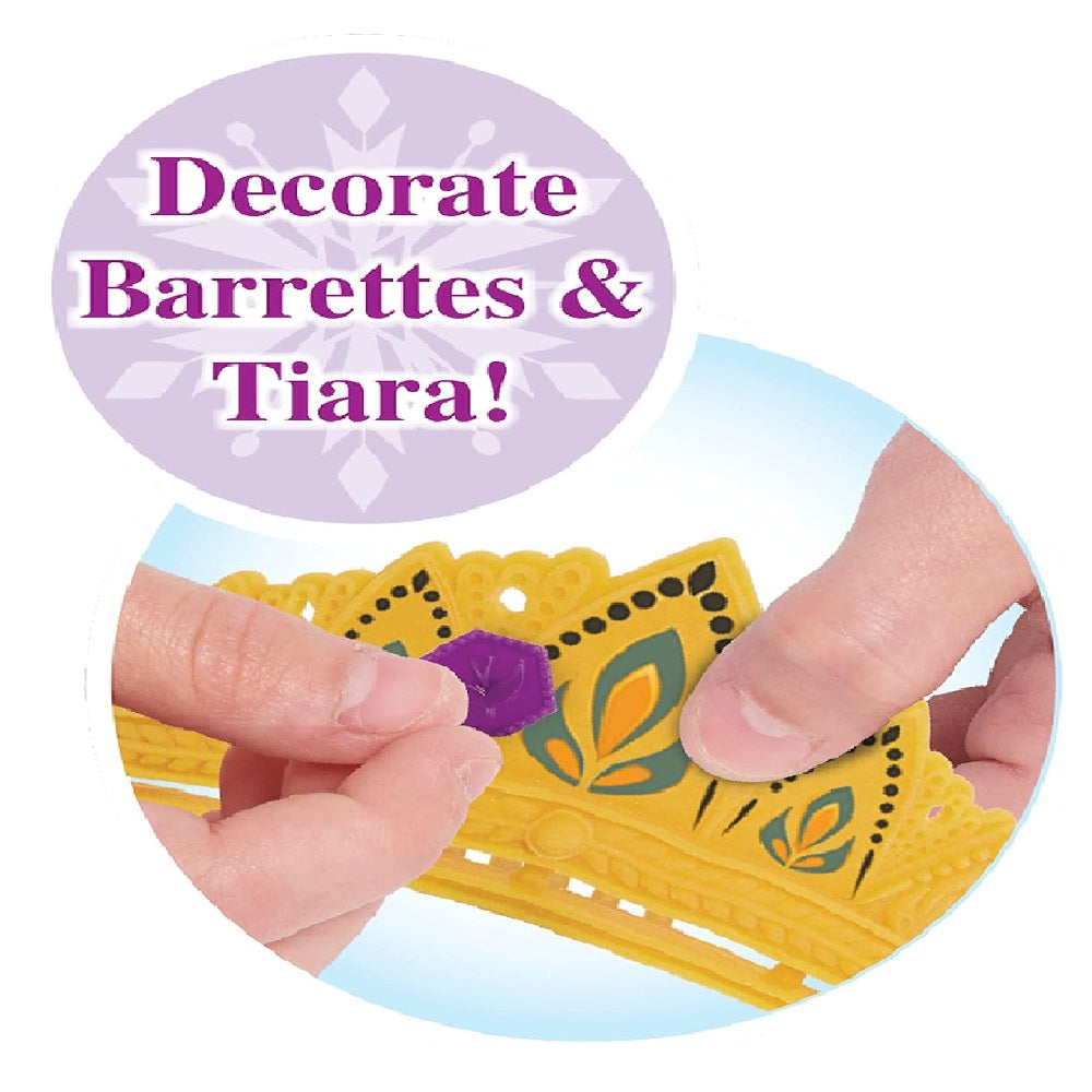 The Disney’s Frozen 2 Queen Anna Deluxe Styling Head includes a brush, Olaf hair twister tool, tiara, four hair gems, four hair barrettes, four hair elastics, and two hair extensions.