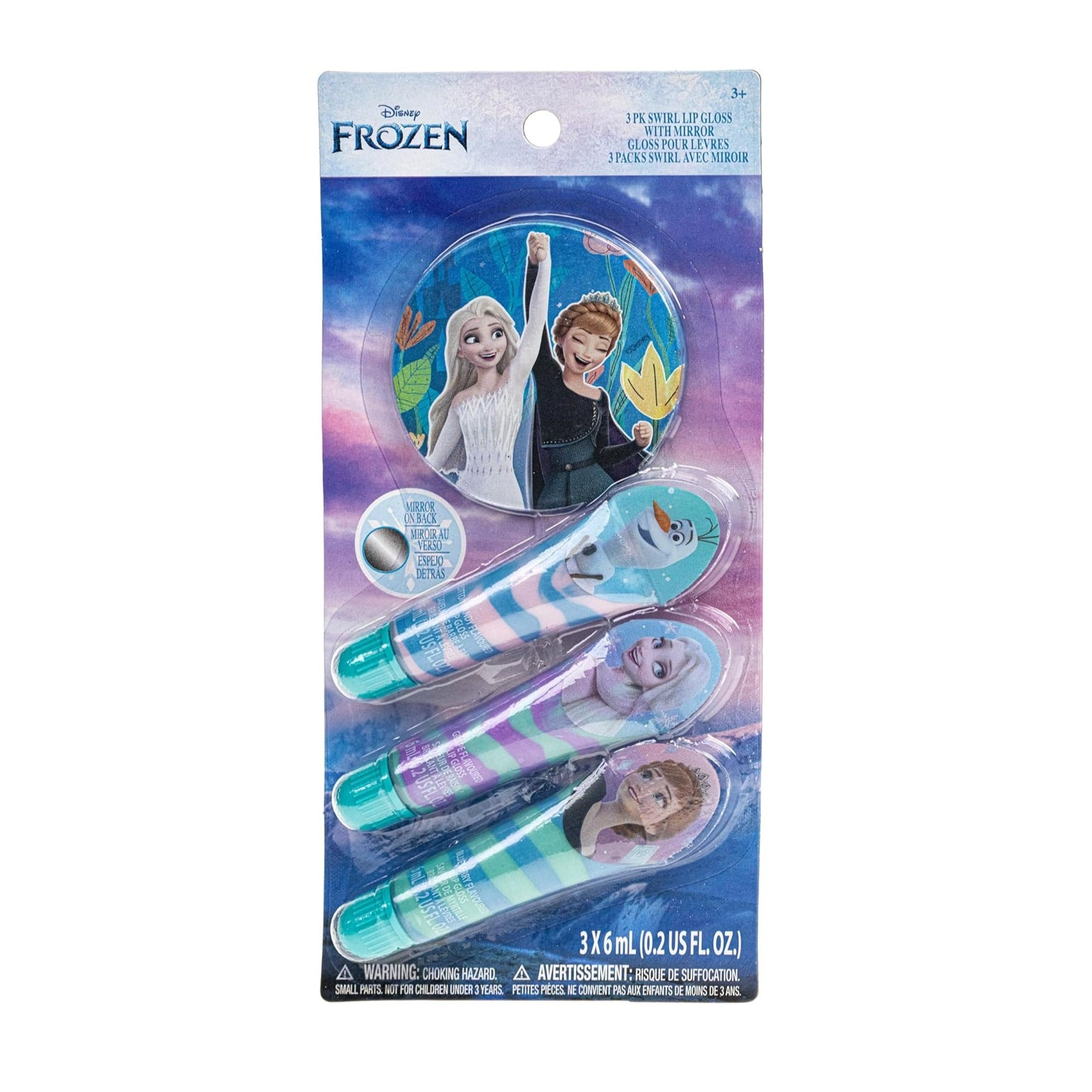 تتضمن المجموعة: 3 ملمعات شفاه ملتوية بنكهات التوت الأزرق والعنب وحلوى القطن. 1 مرآة يدوية مستوحاة من فيلم Frozen.