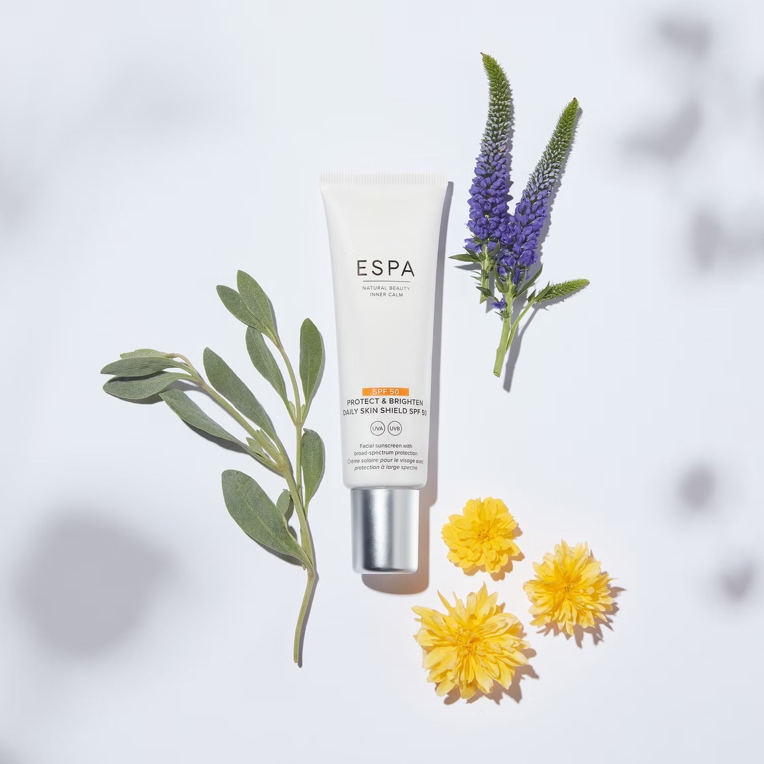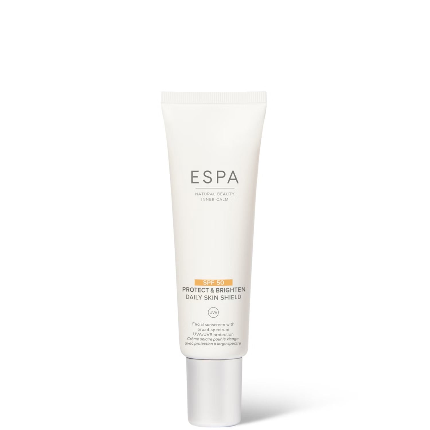 دمج كريم ESPA's Hydrate and Brighten Daily Skin Shield SPF 50 في روتينك اليومي للمساعدة في حماية وتغذية بشرتك.