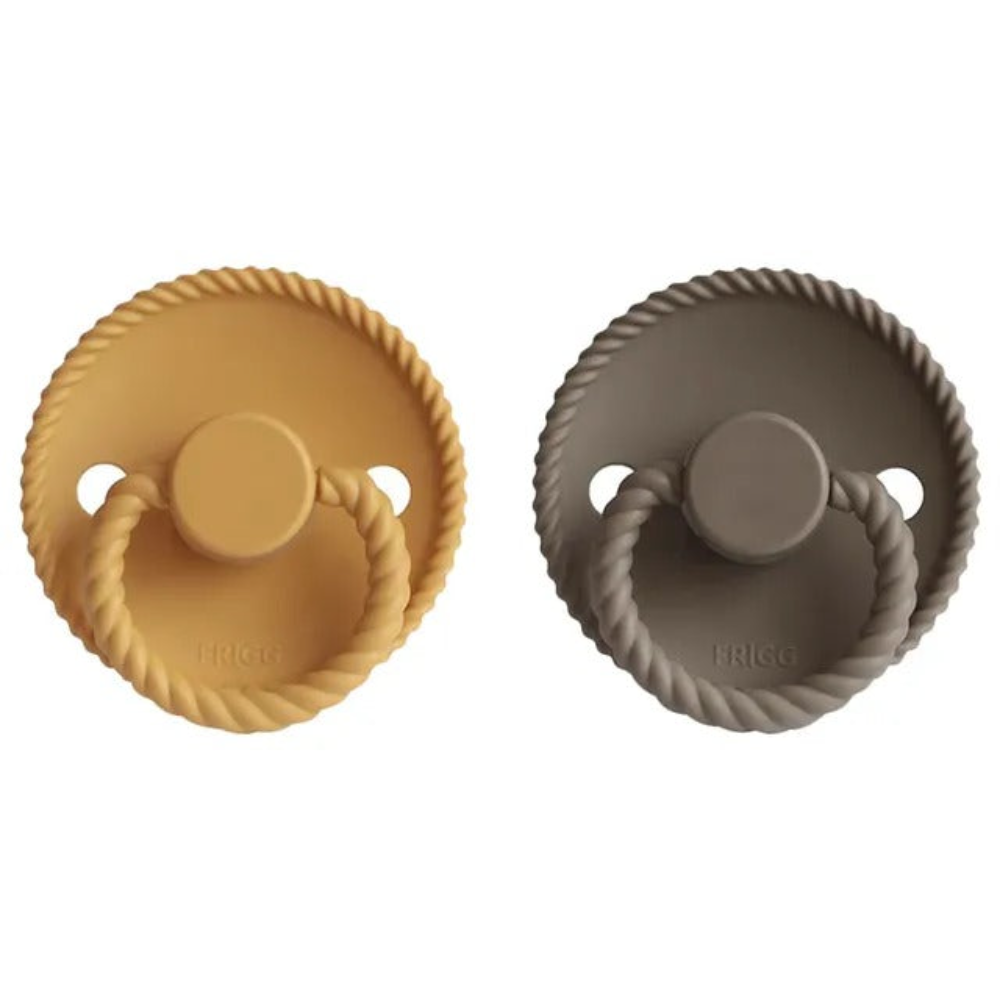 FRIGG Rope makes you think of adventures involving strengths, heights, and depths. The rope is an essential item when you are hiking or climbing. It represents the safety and stability when activities become risky or unpredictable. This shows the underlying inspiration behind the design of FRIGG Rope pacifier. The inspiration of a rope is clear in the design of the pacifier as a thin rope encircles the shield, and a thicker rope is used as a handle. FRIGG Rope is for both boys and girls who love a great adventure.