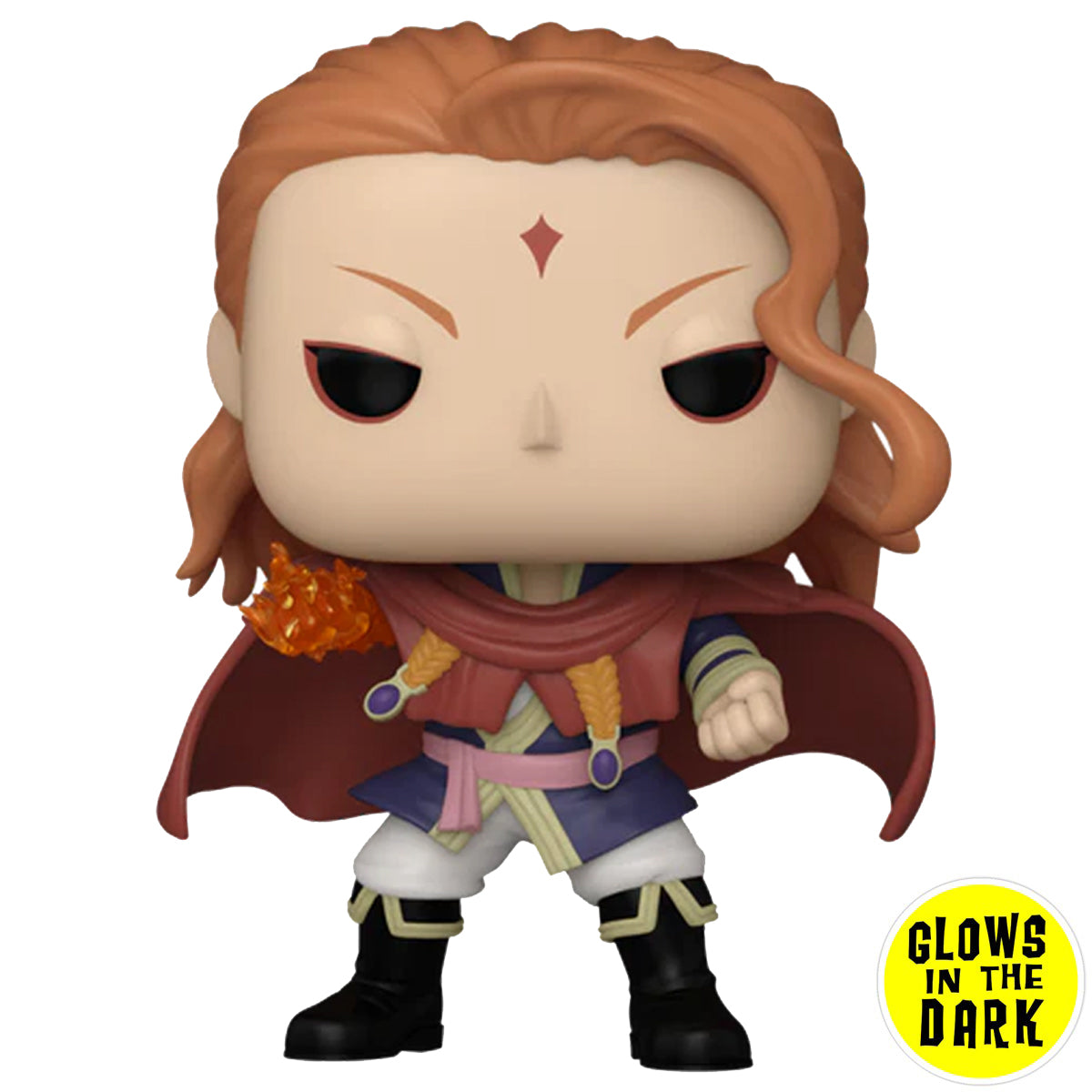 Fuegoleon Vermillion from Black Clover is depicted in this glow-in-the-dark exclusive figure, showcasing his powerful and determined nature. The design reflects his role as a skilled Magic Knight, making it a great addition for Black Clover fans.