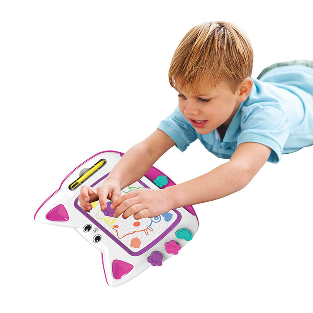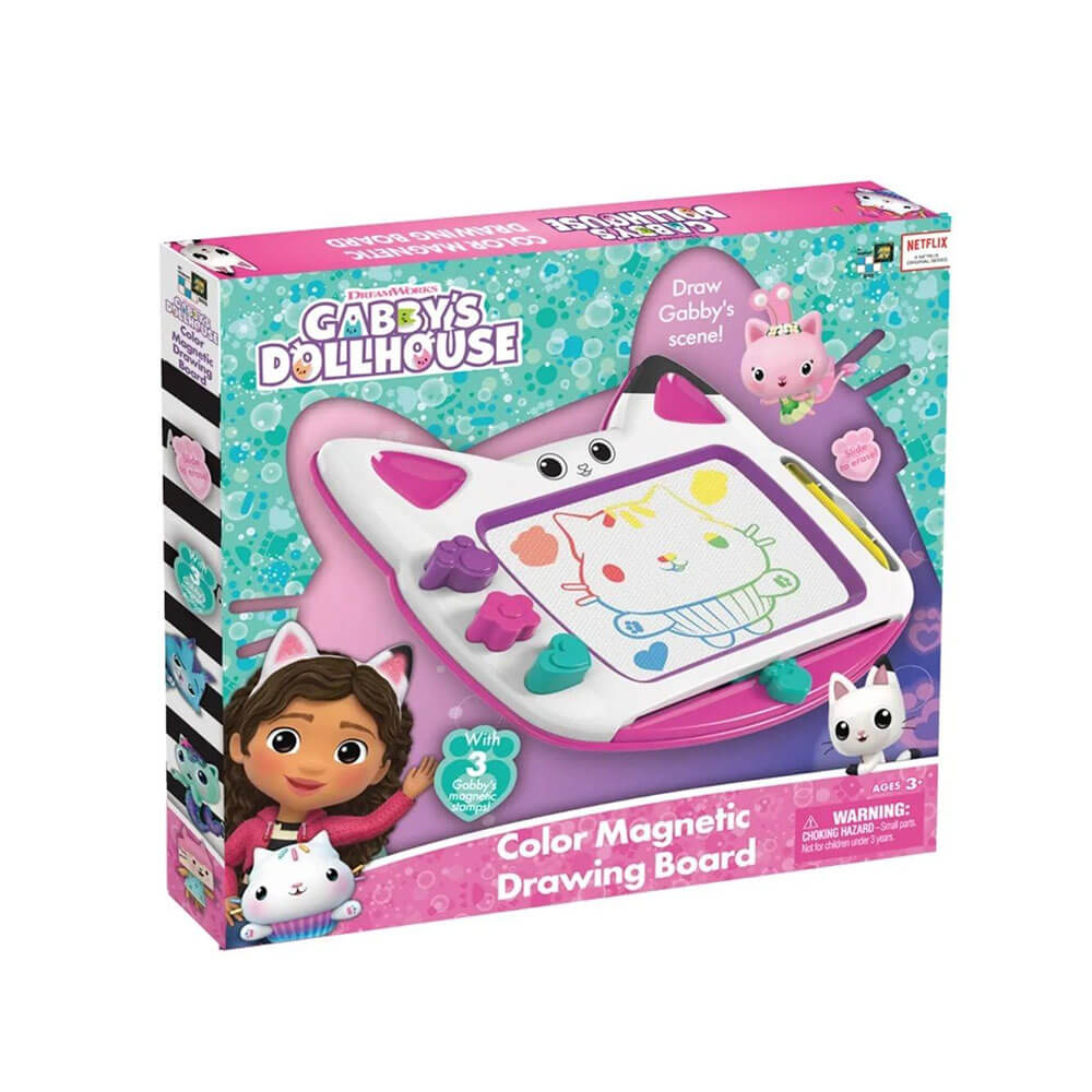 Gabby's Dollhouse Doodle Board, a must-have for young artists and fans of Gabby's Dollhouse! This colorful magnetic drawing board is perfect for creative play and endless fun. It comes with a magnetic pen that allows your child to draw and doodle with ease. But that's not all - this doodle board also includes three adorable stamps featuring Gabby's favorite characters, adding an extra touch of excitement to their creations. Watch as their imagination comes to life on this captivating doodle board, providing hours of entertainment and artistic exploration. Let your child's creativity flourish with the Gabby's Dollhouse Doodle Board!
