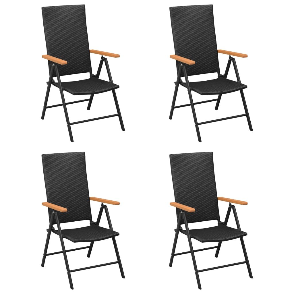 These garden chairs are perfect for use in your garden, terrace, or patio. The chairs are made of durable and weather-resistant PE rattan. The powder-coated aluminium frames make the chairs very sturdy. The stylish brown WPC armrests enhance their look. The backrests feature 7 reclining settings, allowing you to find the most comfortable seating position. Additionally, the chairs can be folded to save space when not in use.