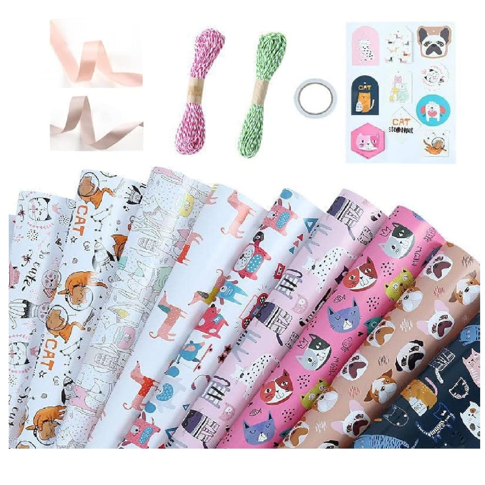 【Perfect Gifts Wrap Set】 Includes 9 Pack wrapping paper sheets + 4ribbons + stickers + roll tape, each gift wrapping paper sheets measures 19.7 inch wide x 27.6inch long is suitable for packing of large medium and small gifts boxes and bags.