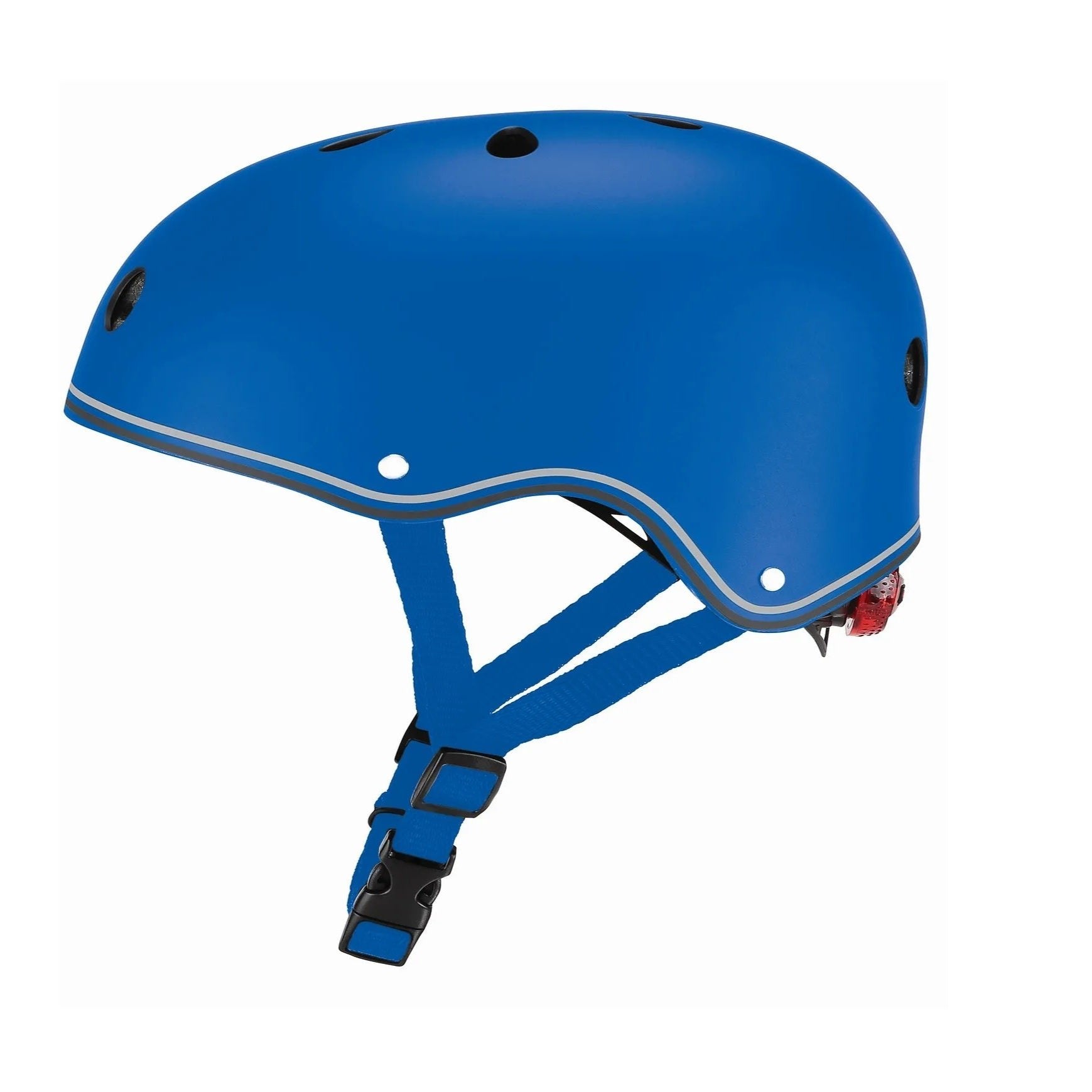 Globber children's helmet size XS/S (48-53 cm) with an adjusting ring, straps for easy and quick fitting of the helmet with a magnetic clasp and a removable visor. The adjusting ring is equipped with LED back lighting to improve visibility in low light conditions. All Globber helmets for children come with foam pads in an ABS housing and provide maximum comfort and safety. 11 air vents around the helmet circumference guarantee the best cooling.