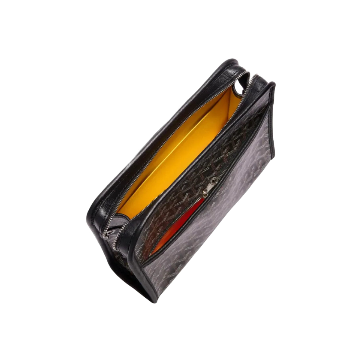 The Goyard Jouvence Toiletry Bag "MM Black" is a luxurious and functional accessory crafted from Goyardine canvas and calfskin leather. The Jouvence MM Toiletry Bag's design makes it perfect for keeping toiletries upright and preventing spills or leaks, ensuring your high-end toiletry bag remains in pristine at all time. Cleaning is a cinch because of its water-resistant cotton lining. Additionally, the convenient loop tab, another subtle feature that can be attached to anything thereby makes this designer toiletry bag even more useful. This premium travel accessory combines durability, sophistication, making this Goyard Jouvence Toiletry Bag perfect for globetrotters who appreciate luxury travel essentials.