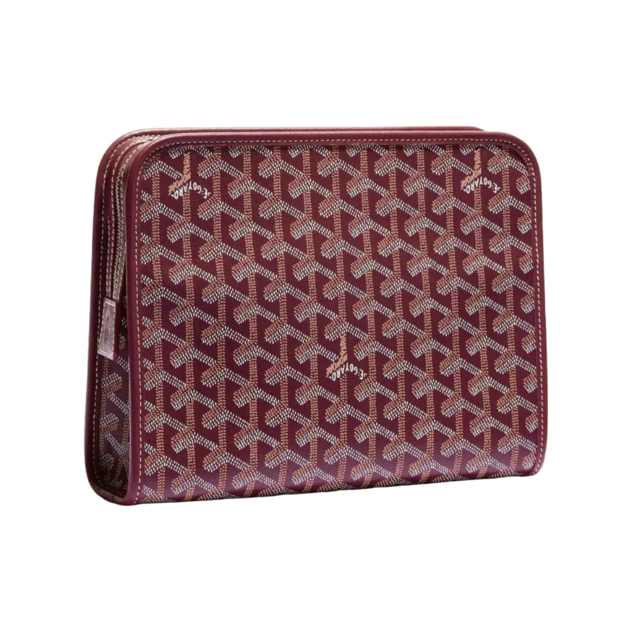 This Goyard Jouvence Toiletry Bag MM Burgundy is an elegant and practical accessory for anyone on the go. Crafted with the signature Goyard canvas, it features a waterproof interior to keep your everyday items safe and secure with ample storage space. Perfect for everyday use or travel.