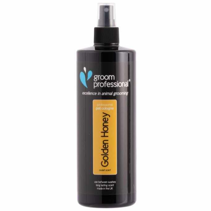 كولونيا جروم بروفيشنال جولدن هوني كولونيا للحيوانات الأليفة تدوم طويلاً برائحة العسل الغني الدافئة مع نفحات من الفانيليا والأرز والعنبر والمسك الحلو. رائحة لذيذة للجنسين، والتي ستترك كلبك برائحة طيبة بما يكفي لتناول الطعام! تدوم الرائحة لأيام. رائحة للجنسين تدوم طويلاً رائحة العسل الحلوة