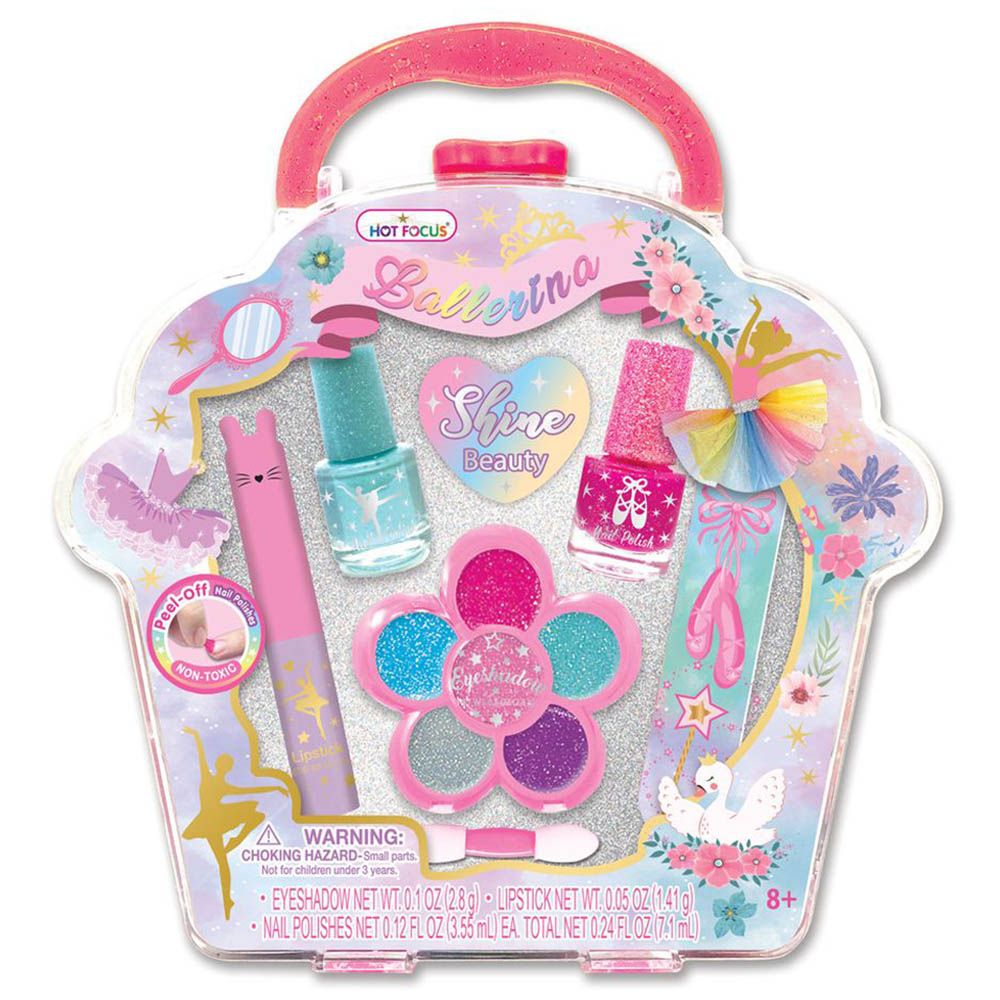 Whether it's for a special event, a playdate, or just a regular day when she wants to feel her best, this case provides the perfect finishing touches for a variety of occasions. Inside the acrylic case, an array of makeup treasures awaits, featuring a rich palette of eyeshadows, lip glosses, blushes, and more. This versatile assortment allows your child to experiment with a variety of looks, from natural and subtle to bold and glamorous.
