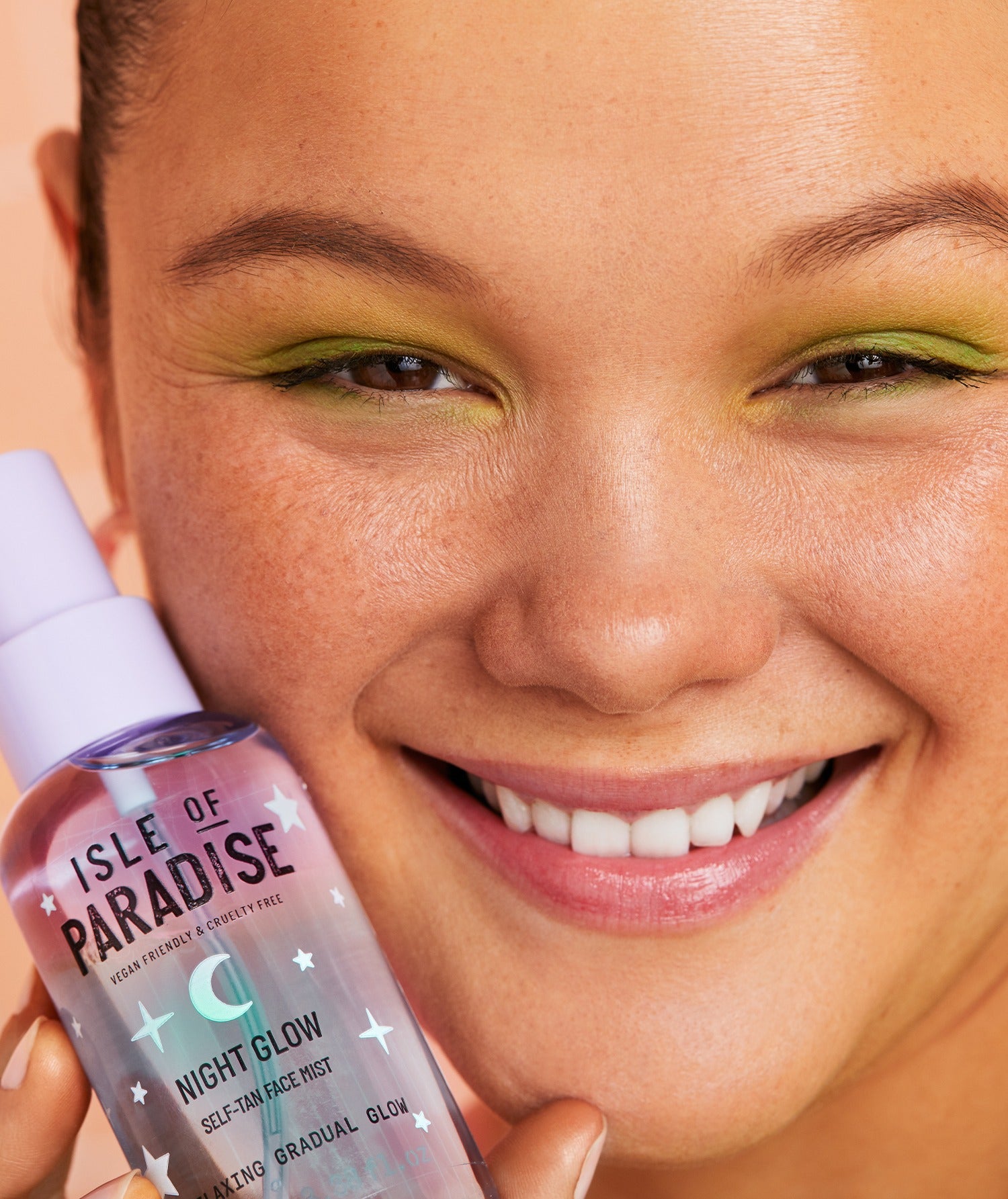 Awaken to a glowing, healthy-looking complexion with the Isle of Paradise Self-Tanning Face Mist. The night-time facial mist is infused with a soothing blend of ylang ylang, jasmine, and lavender to help relax the senses.
